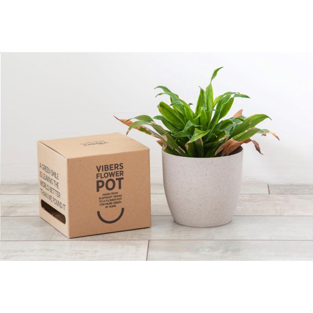 Duurzame Vibers bloempot gemaakt van olifantsgras. Een bijzonder sterke grassoort geteeld op Nederlandse bodem. De natuurlijke vezel is biologisch afbreekbaar. Het gras neemt wel 4 keer zoveel CO² op als een bos met bomen en groeit op arme grond zonder gebruik van bestrijdingsmiddelen. Deze bloempot is het duurzame alternatief voor de gebruikelijke plastic bloempot. Made in Holland.