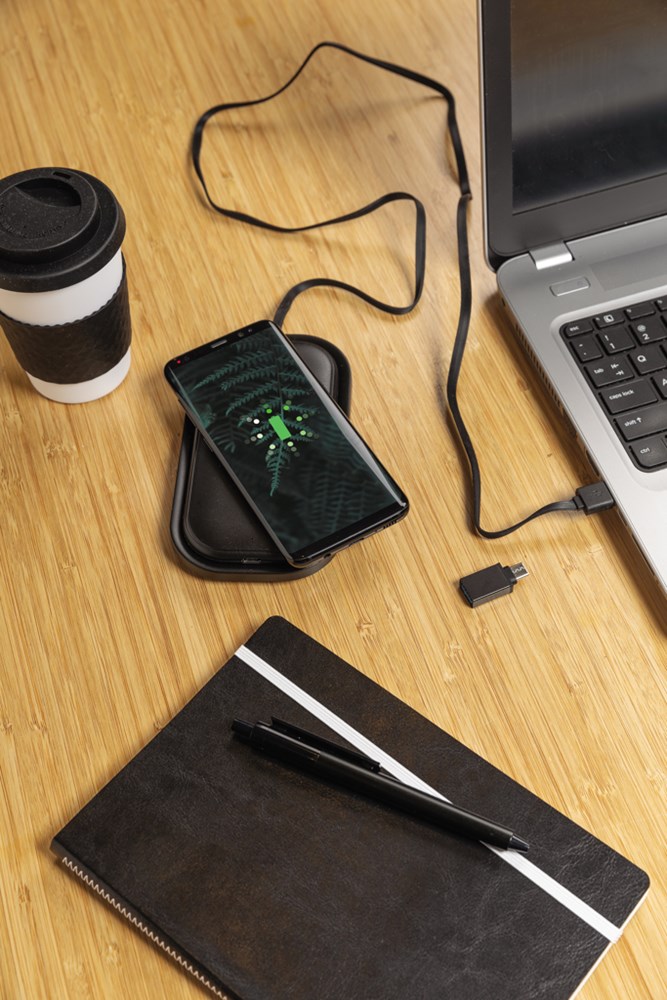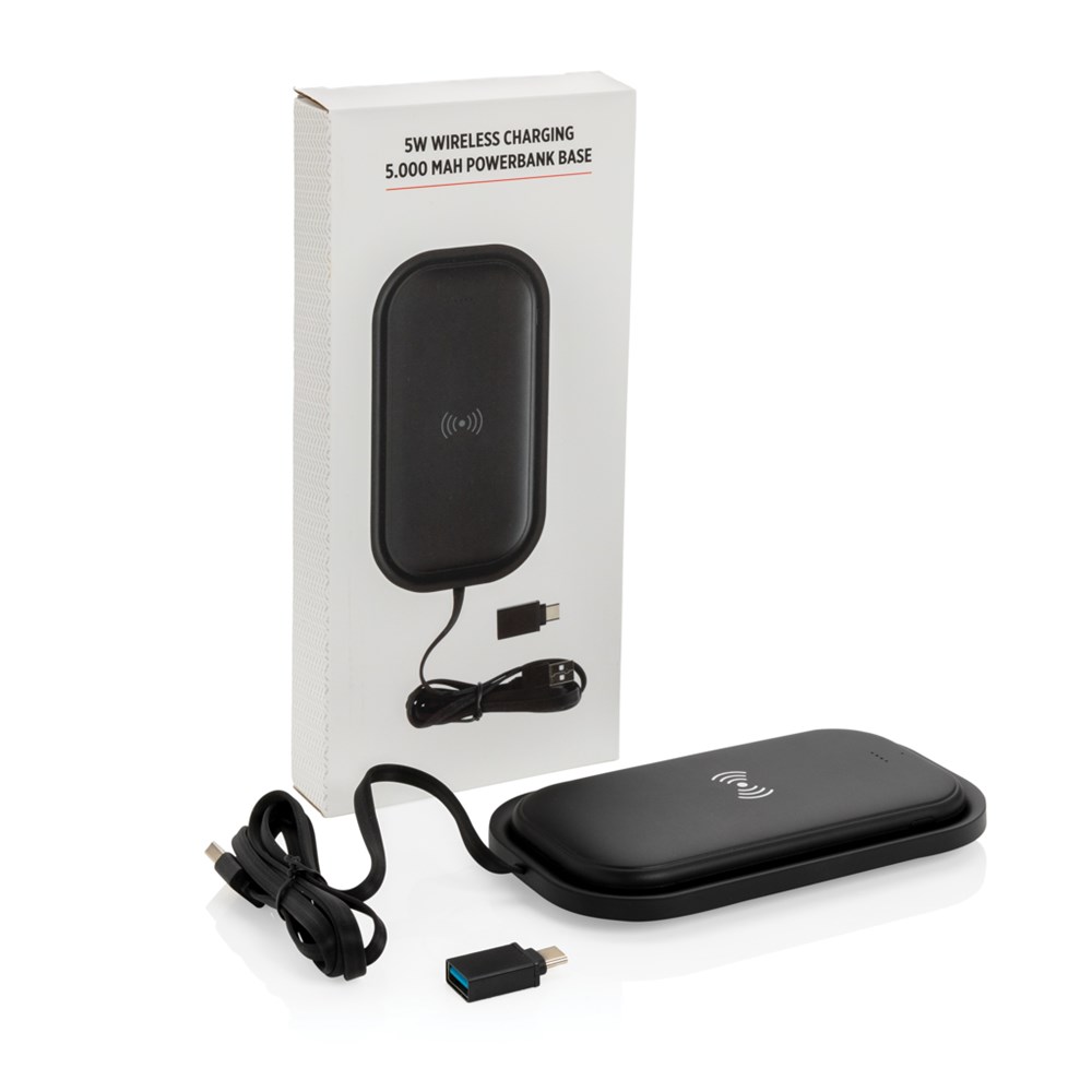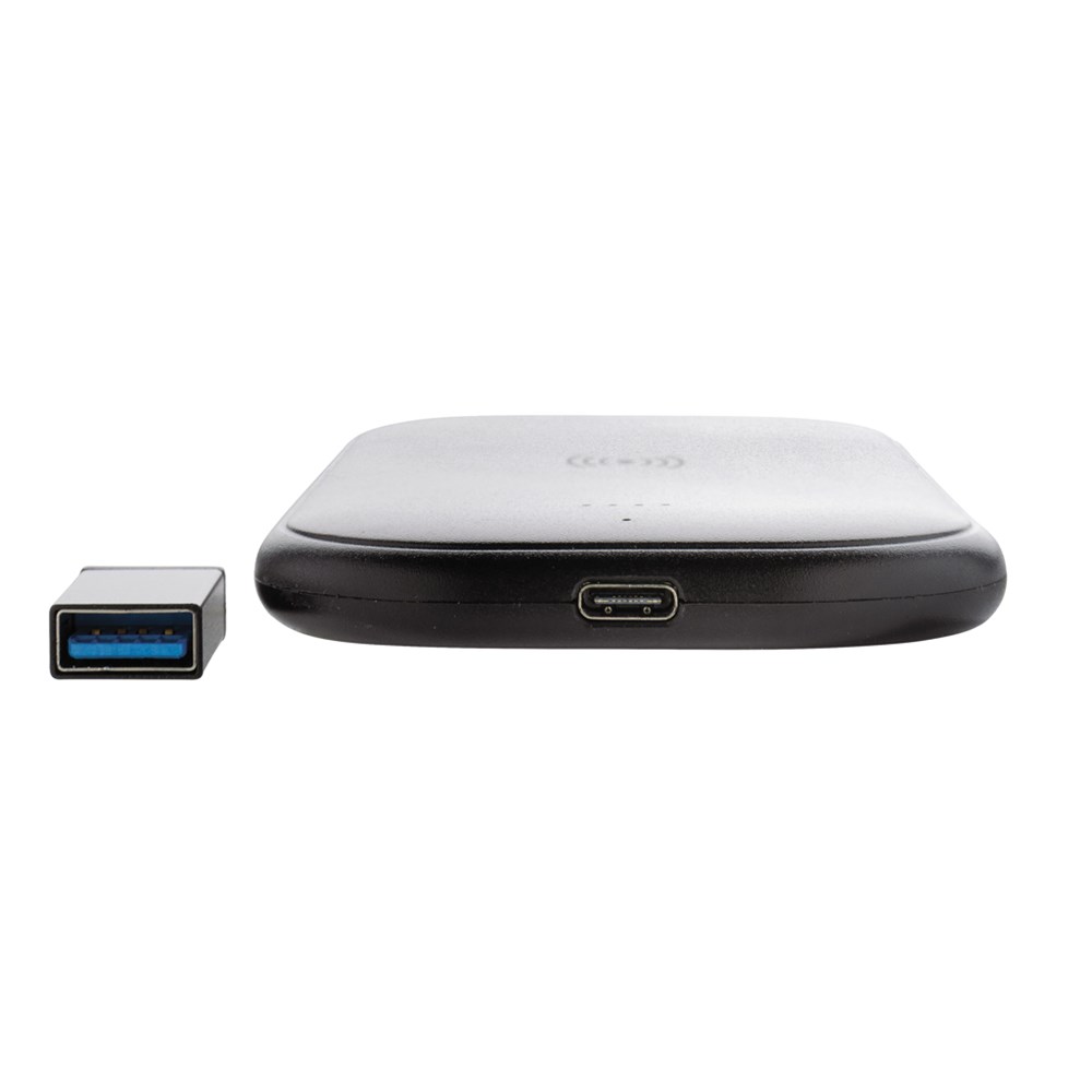 Uniek ontwerp ABS powerbank en bureauoplader in 1. Plaats de powerbank eenvoudig in de basis om deze via inductie op te laden. Hierdoor ben je er zeker van dat de powerbank altijd volledig opgeladen is wanneer je hem nodig hebt. Als je hem in de basis plaatst, kun je je telefoon erop plaatsen om hem op te laden. Met de powerbank laad je onderweg op via de 5W draadloze oplader of via de type C output. Het item wordt geleverd met een USB C naar USB A-adapter om USB A-kabels te gebruiken. Draadloos opladen compatibel met alle QI-apparaten zoals de nieuwste generatie Android, iPhone 8 en hoger USB-ingang met geïntegreerde kabel 5V / 2A; Type-C-ingang 5V / 2A; Type-C-uitgang: 5V / 2,1A; Draadloze uitgang 5V / 1A. Inclusief 4 LED-indicatoren om de resterende capaciteit te tonen. Inclusief geïntegreerde 100 cm TPE PVC-vrije micro usb-kabel.
