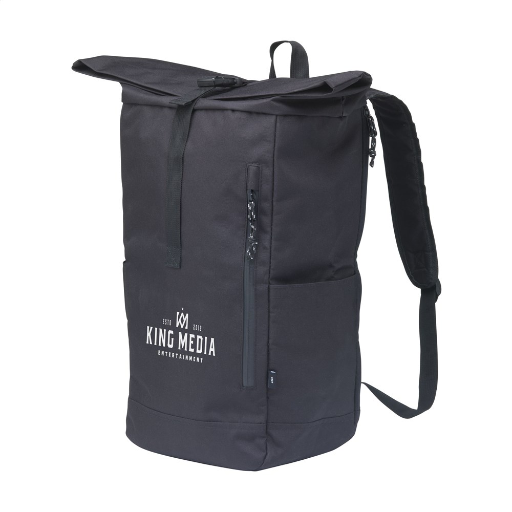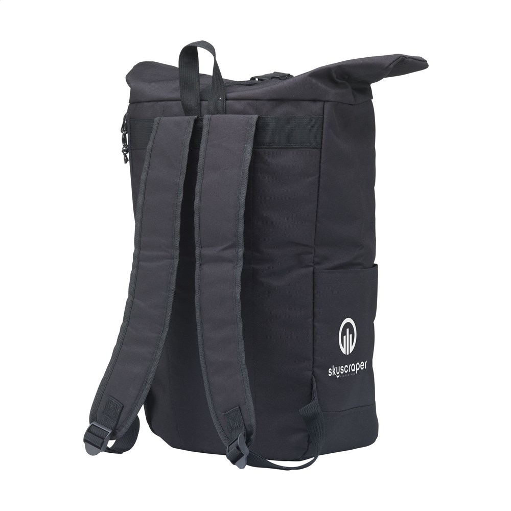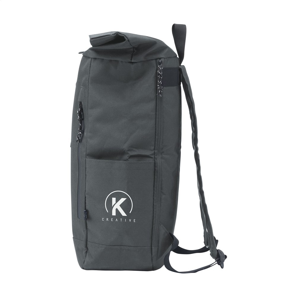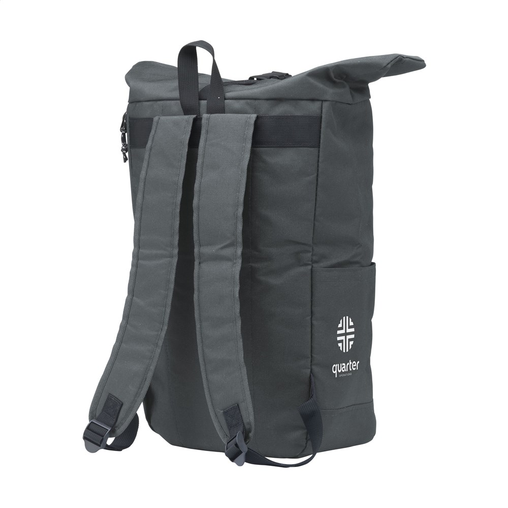 WoW! Praktische, stevige en waterafstotende ‘roll-top’ cooler rugzak van RPET-polyester (gemaakt van gerecyclede PET-flessen). De rugzak heeft een groot binnenvak met een speciaal koelcompartiment. Het koelvak is snel bereikbaar via de bovenzijde van de tas of via een praktische en waterdichte rits aan de achterzijde. De ideale tas voor outdoor activiteiten, picnics and food-delivery. Inclusief ritsvak aan de voorzijde, 2 zijvakken, foam rugzijde met gewatteerde, verstelbare schouderriemen, draaglus en handige rolsluiting met kliksysteem aan de bovenzijde. De perfecte tas met een minimale ecologische footprint. Inhoud ca. 22 liter.