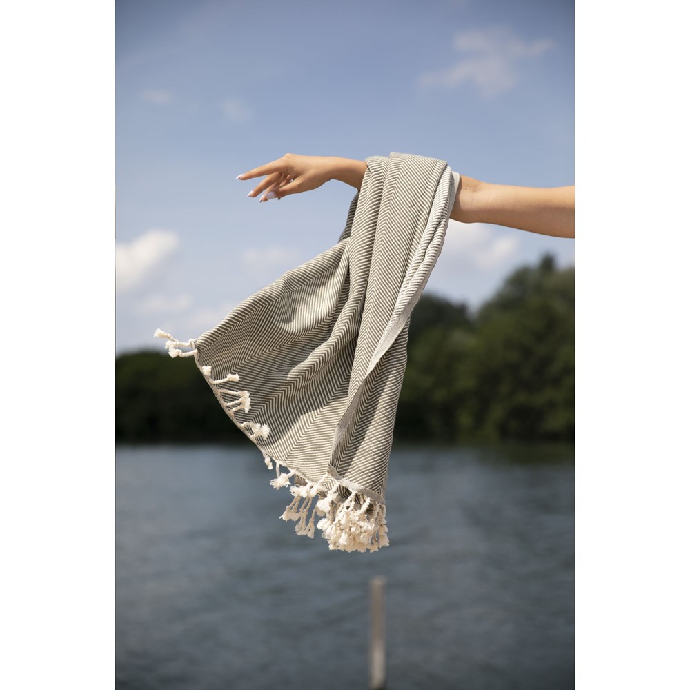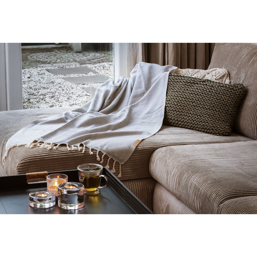 Een multifunctionele hamamdoek van Oxious. Gemaakt van 92% Oekotex gecertificeerd katoen (waarvan 42% gerecycled) en 8% RPET. Pure is een heerlijk zacht en stijlvol doek met een klassiek visgraatmotief. Prachtig als shawl, kleed op de bank, luxe (hamam)doek of handdoek. Het doek is handgemaakt. Pure staat symbool voor een puur leven van schoonheid en zuiverheid. Met dit mooie doek kan het pure genieten beginnen.
