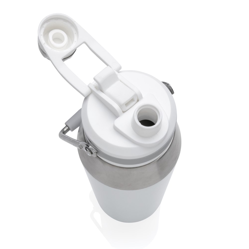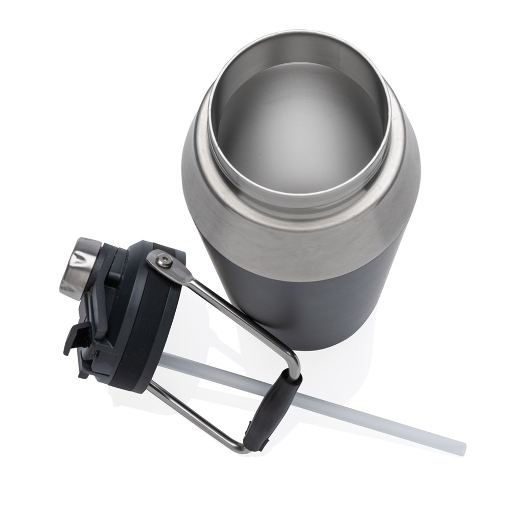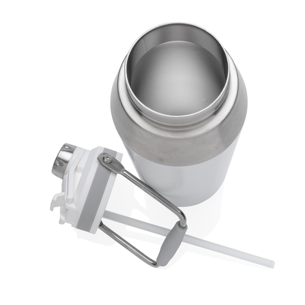 De ultieme roestvrijstalen fles voor veelzijdige mogelijkheden onderweg. De deksel heeft een dubbele functie met zowel een rietje als een schroefdop, zodat je kunt kiezen hoe je uit de fles wilt drinken! De flessen zijn voorzien van een handvat aan de bovenkant voor gemakkelijk dragen. Dubbelwandig vacuüm geïsoleerd roestvrij staal houdt dranken 5 uur warm of 15 uur koud. Een poedercoating zorgt voor een zeer duurzame buitenkant. Capaciteit 1000ml. BPA-vrij.