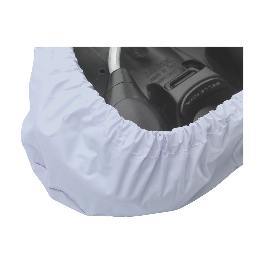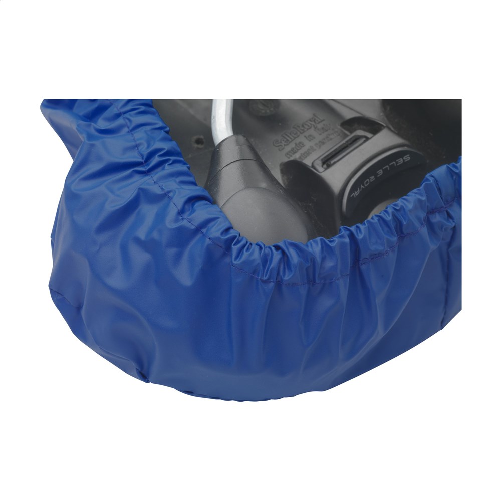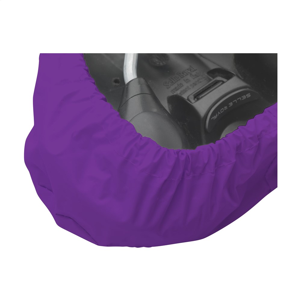 Zadelhoes gemaakt met gerecycled PVC (ca. 50% gerecycled PVC + 50% nieuw PVC). Elk zadelhoesje heeft een kartonnen plaat aan de binnenkant, zodat het niet kreukt. De elastische band aan de onderkant is bij dit model niet zichtbaar, deze is netjes afgewerkt.