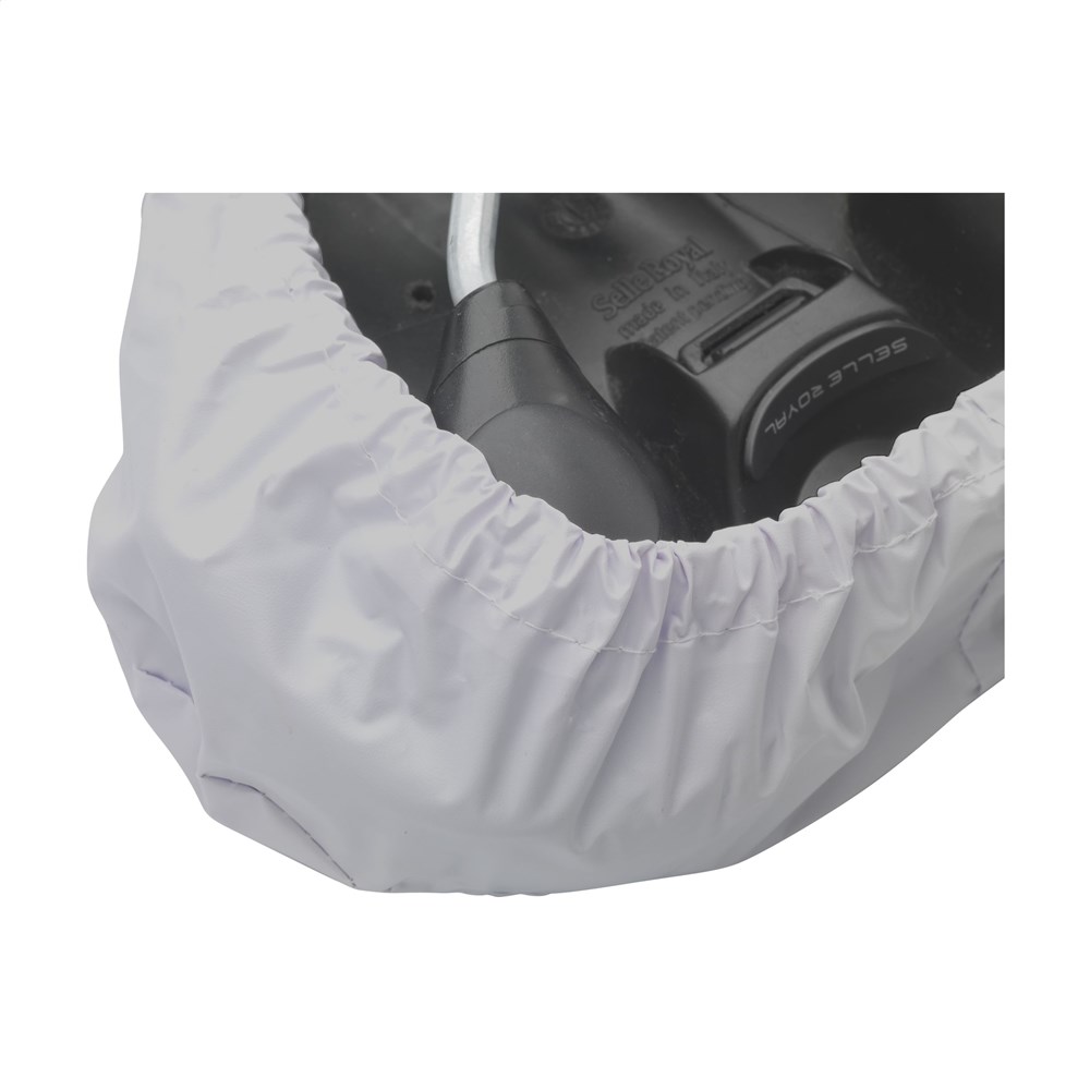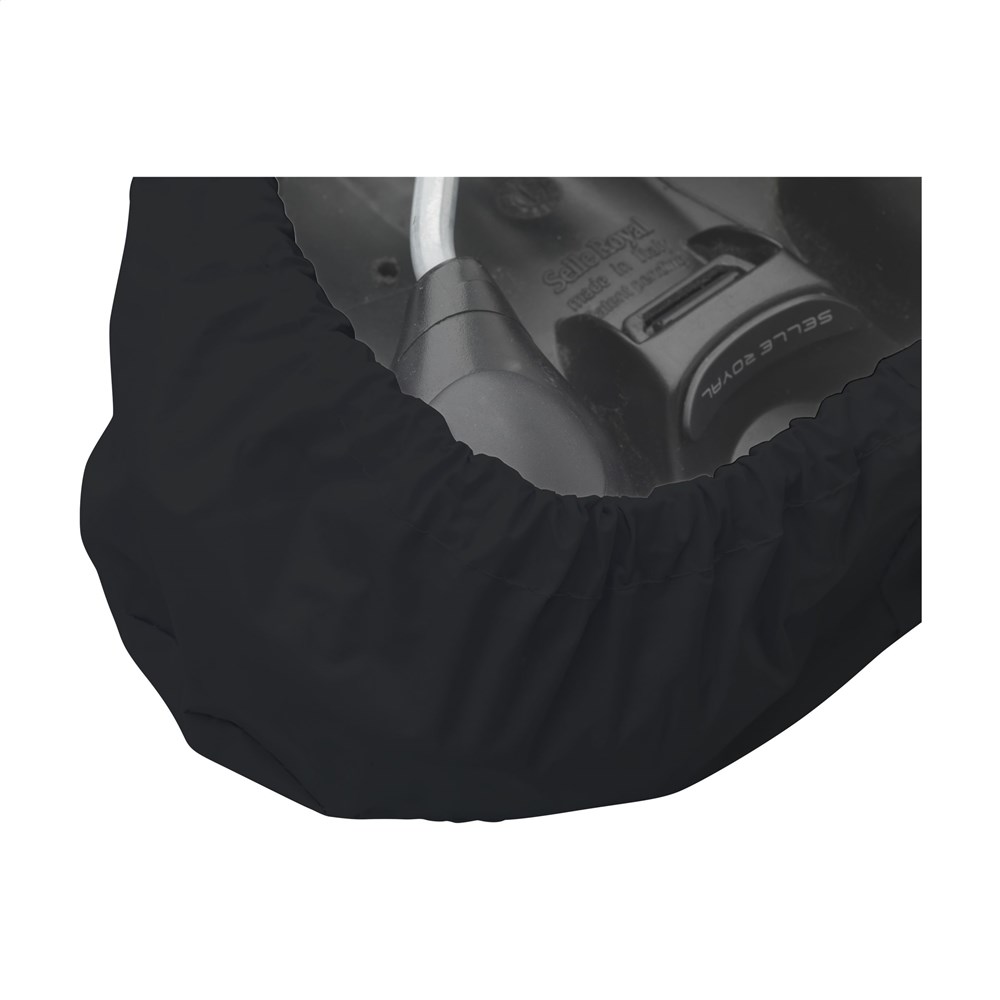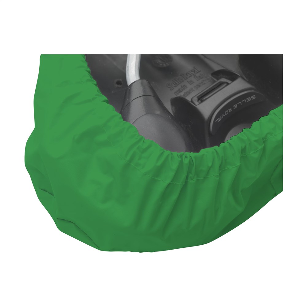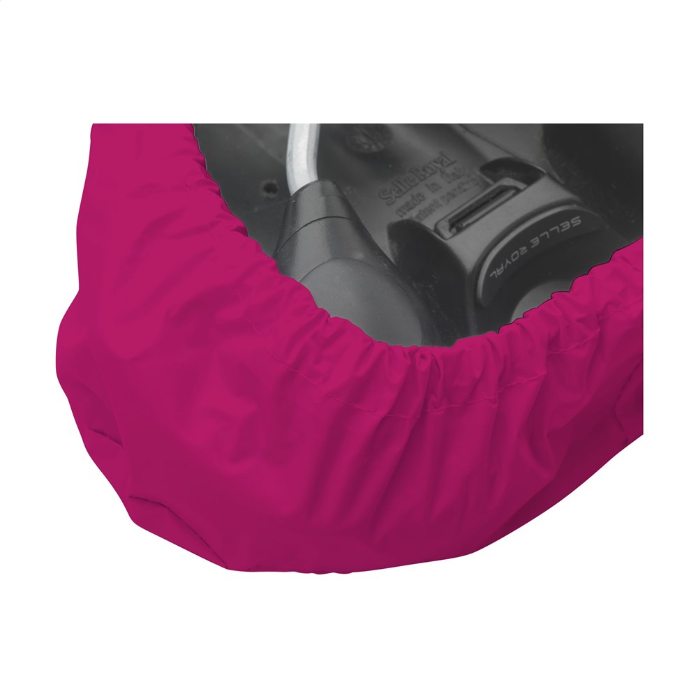 Zadelhoes gemaakt met gerecycled PVC (ca. 50% gerecycled PVC + 50% nieuw PVC). Elk zadelhoesje heeft een kartonnen plaat aan de binnenkant, zodat het niet kreukt. De elastische band aan de onderkant is bij dit model niet zichtbaar, deze is netjes afgewerkt.