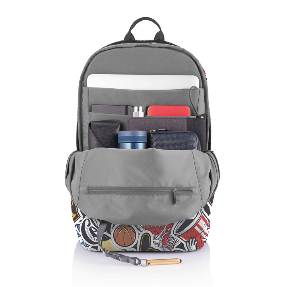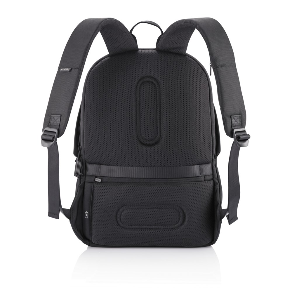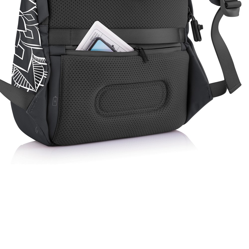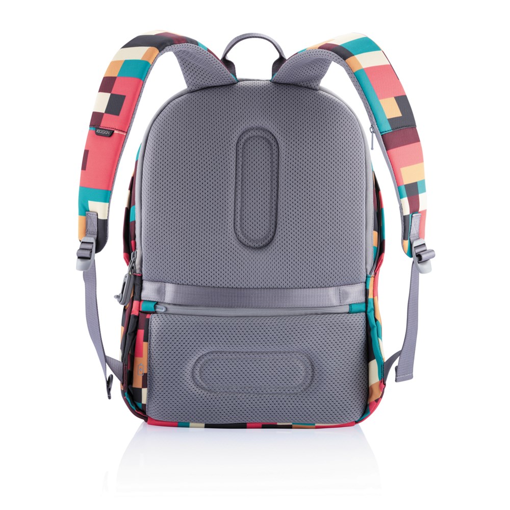 Naar de universiteit, naar school, naar het werk of op vakantie? Bobby Soft is er klaar voor! Het iconische Bobby anti-diefstal ontwerp met verborgen en RFID-beschermde vakken en verborgen ritsen is aangevuld met een veilige ritssluiting op het hoofdcompartiment om uw spullen nog beter te beschermen. Het ruime interieur is veelzijdig en handig. In het hoofdcompartiment kunt u uw spullen gemakkelijk ordenen met een gewatteerd 15,6" laptopcompartiment, diverse slimme kleine zakken en een sleutelhangerclip. De bovenkant van de rugzak is flexibel, waardoor er extra ruimte ontstaat voor het opbergen van kleding, boeken of wat u maar nodig heeft. De rugzak is uitgerust met een geïntegreerde USB-oplaadpoort en gemaakt van waterafstotend materiaal. Bobby Soft is gemaakt van gerecycled materiaal – er worden 37 oude plastic flessen gebruikt er wordt 22L water bespaart tijdens de productie van elke rugzak. Een rugzak die past bij elke stijl. Geregistreerd ontwerp®