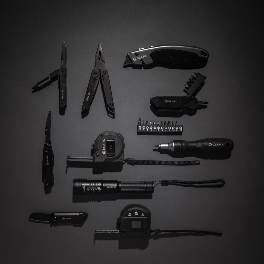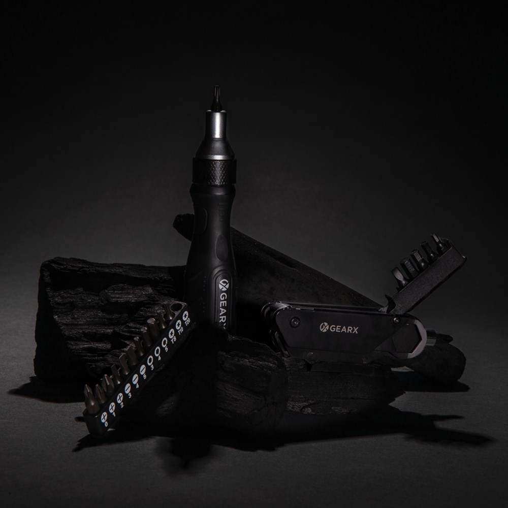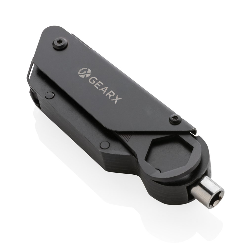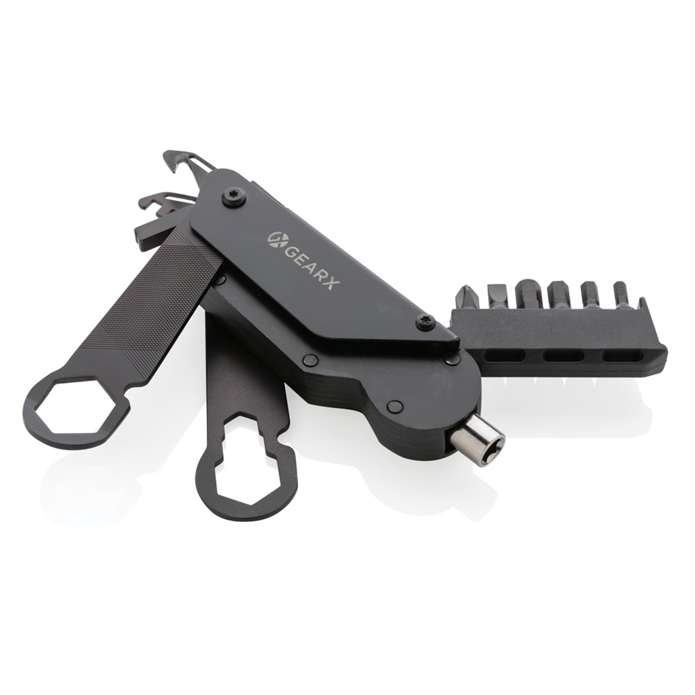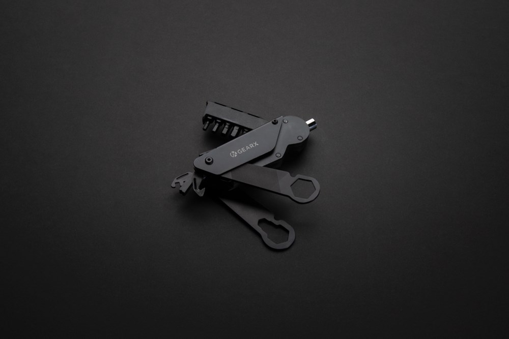 Wanneer je fiets een reparatie nodig heeft, zorg er dan voor dat je het in stijl doet. Dit fietsgereedschap van topkwaliteit wordt geleverd met alle gereedschappen die nodig zijn om je fiets in een mum van tijd te repareren. De luxe aluminium behuizing is gecombineerd met hoogwaardige 420 roestvrijstalen gereedschappen, allemaal in volledig zwart. De duurzame gereedschappen zijn gemaakt om lang mee te gaan. De 16 functies omvatten: Bithandgreep, geïntegreerde bithouder (S2.5, S2 5mm, S2 4mm, S3 3mm, S2 6mm, S2 PH2), spaak 3.4/3.3, stanleymes, adapter, multifunctionele 18mm sleutel met slot, tweede multifunctionele sleutel 15/10/8 mm met slot, vijl. Verpakt in luxe geschenkdoos.