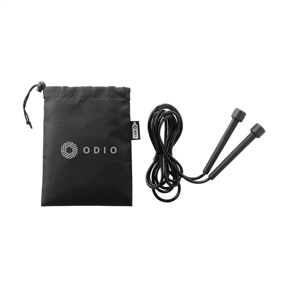PVC sportspringtouw (270 cm) met kunststof handgrepen.Per stuk in een RPET-polyester pouch.