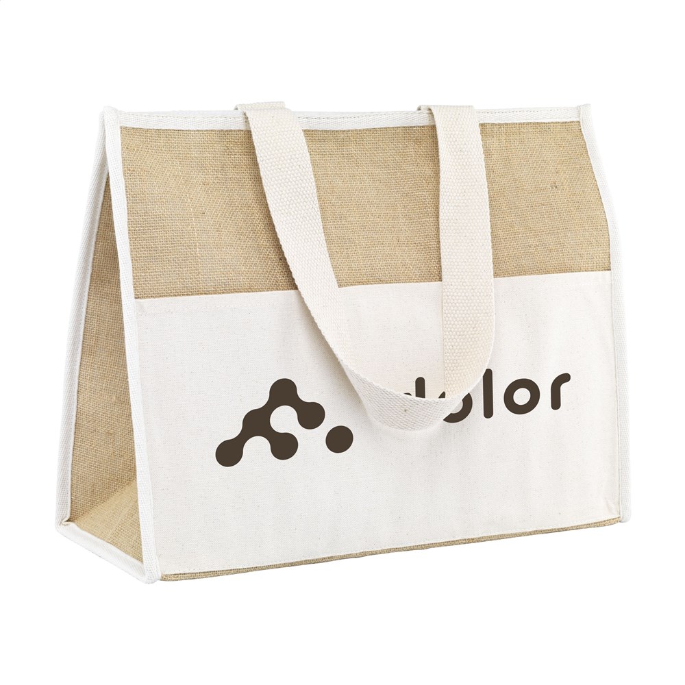 WoW! Royale shopper/koeltas met isolerende, aluminium binnenzijde en klittenbandsluiting. Ideaal voor het vervoeren van diepvriesproducten en ook geschikt om eten en drinken koel te houden tijdens een dagje weg. Met op elkaar afgestemde natuurlijke kleuren en een materiaalcombinatie van stevig jute en katoen. Lange, geweven hengsels. Het voorvak met klittenband biedt extra opbergruimte. Geschikt als boodschappentas, koeltas en strandtas. Inhoud ca. 28 liter.