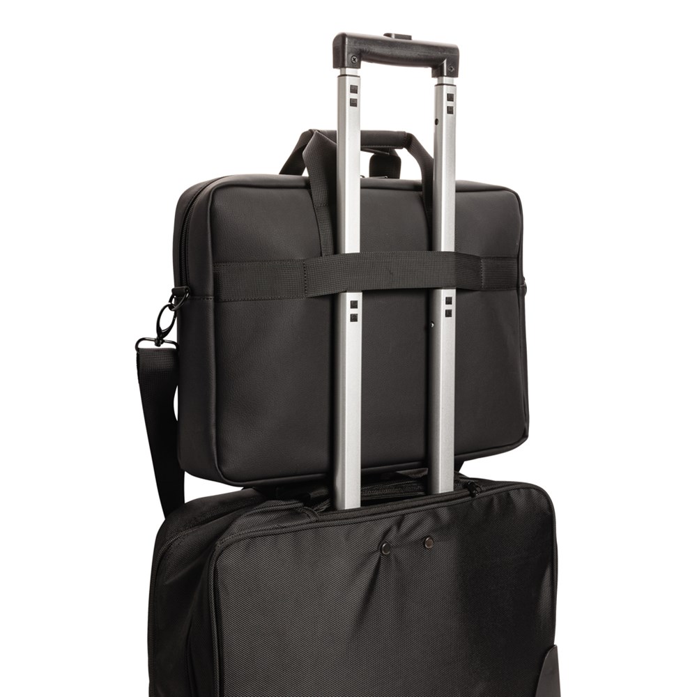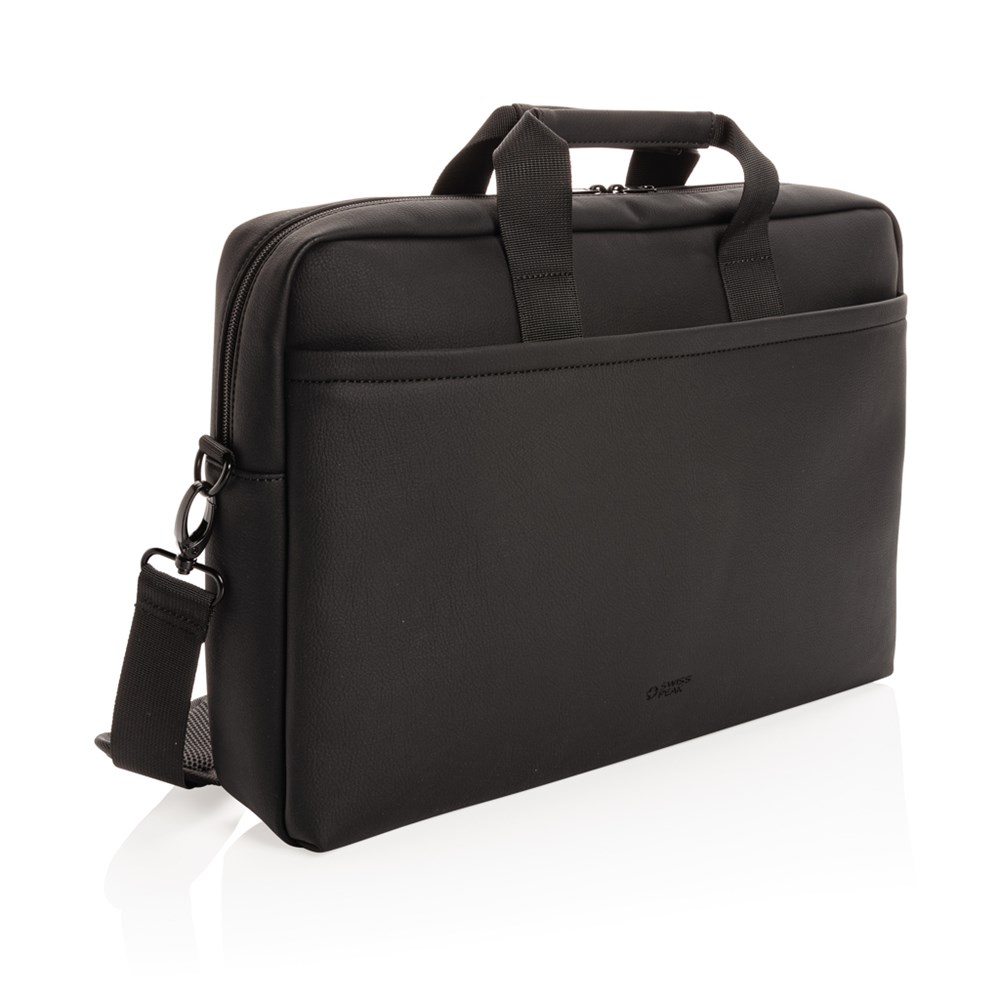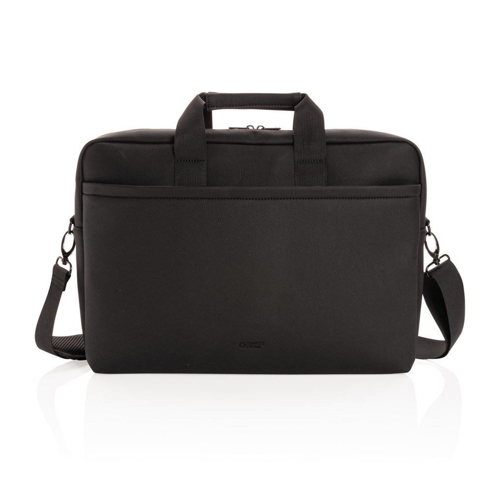 Geef je werkleven een boost met deze gestructureerde tas gemaakt van zacht vegan leer in een strakke en gestroomlijnde stijl met ton-sur-ton ritsen. De laptoptas heeft een ritssluiting aan de bovenkant, een handvat aan de bovenkant, een verstelbare schouderriem met schouderstuk, een extern voorvak met ritssluiting, een open binnenvak, een bagageriem en een 15,6 inch laptopvak met klittenbandsluiting. Buitenkant 100% PU, binnenkant 100% 210D polyester. PVC-vrij.