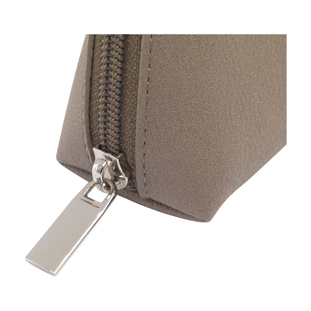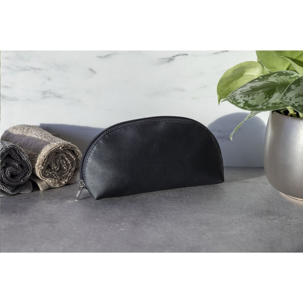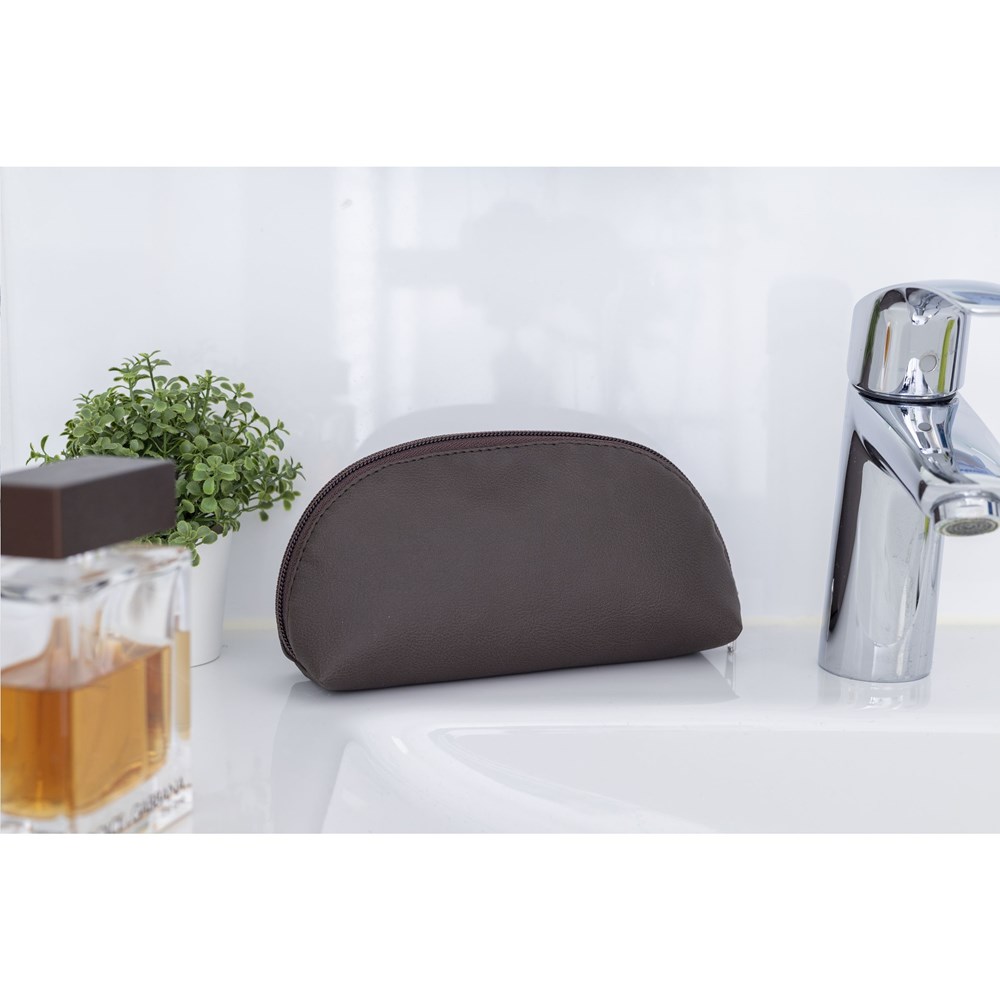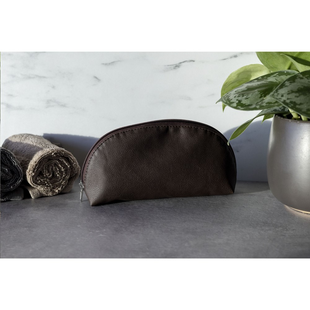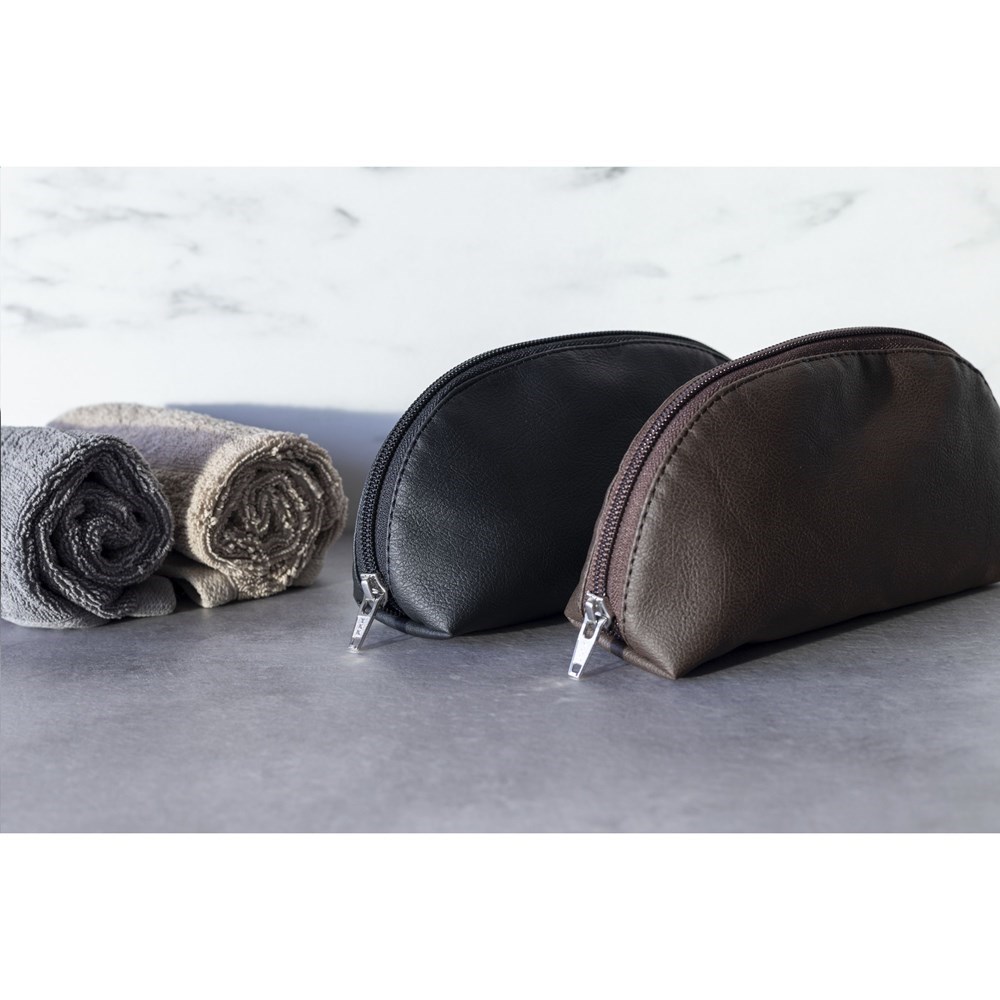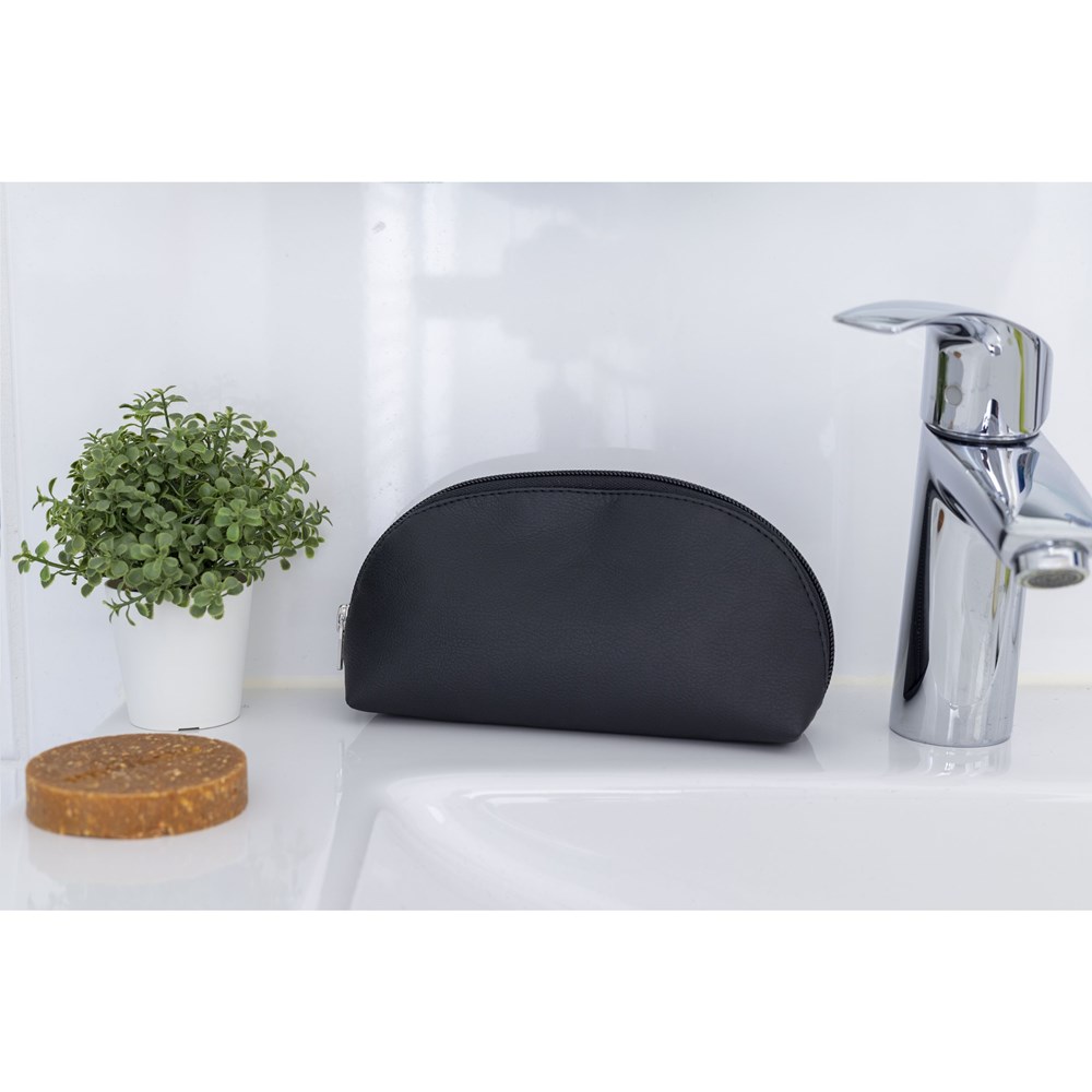 WoW! Een toillettas die er uitziet als leer, maar gemaakt is van appels. Deze innovatieve technologie is zowel duurzaam als vegan. Hoe dit werkt? Als er van appels bijvoorbeeld appelsap gemaakt wordt, blijft er veel pulp achter. Dit pulp is de basis voor het maken van dit ‘leer’. De textuur en de kleuren worden aan het meel toegevoegd en het materiaal dat daaruit ontstaat is geschikt om mee te naaien. Zwitsers design, geproduceerd in Italië. Dit product is ook geschikt als pennenetui. Optioneel: Per stuk in kraft doos.