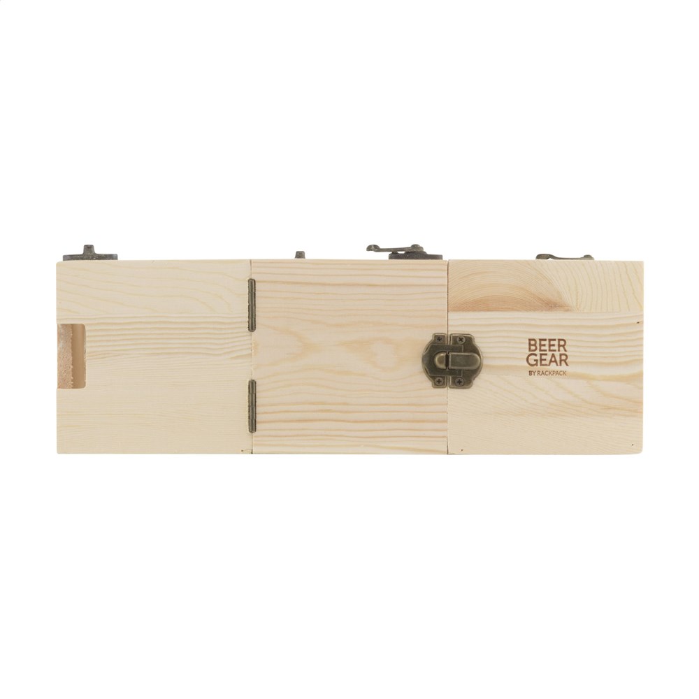 Rackpack Beer Gear: een biergeschenkkist en een meter bier tray in één. Een cadeauverpakking voor 5 flesjes bier. Kan vervolgens ingezet worden als één meter bier (negen glazen bier). Dus nodig acht vrienden uit en laat het feest maar beginnen. Rackpack: een geschenkkist van FSC hout met een nieuw tweede leven!