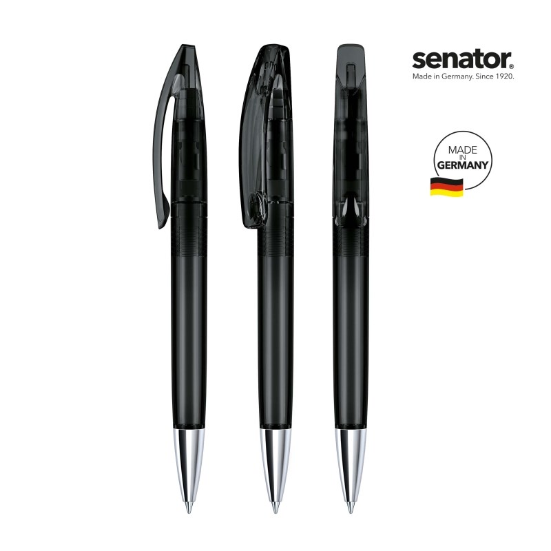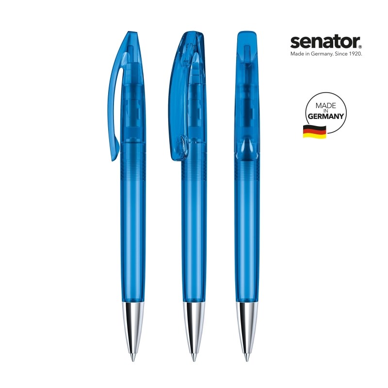 senator® Bridge Clear MT Draaibalpen, Balpen met draaimechaniek, Geheel glanzend transparant, metalen glanzende punt, senator® magic flow G2 vulling (1.0 mm), Schrijfkleur: blauw of zwart