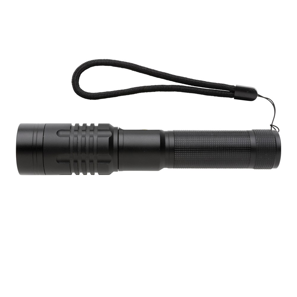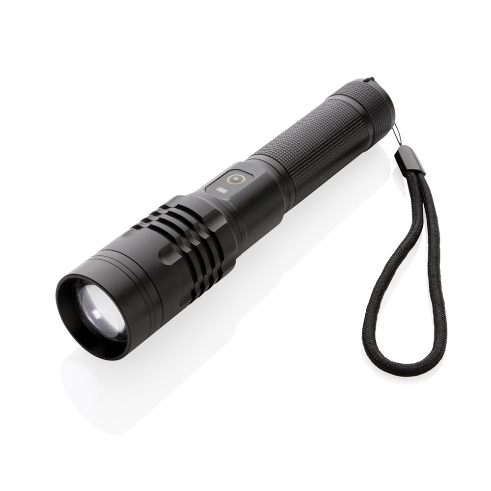 Functionaliteit, prestaties en design komen allemaal samen in deze USB oplaadbare zaklamp. De hoogwaardige behuizing van aluminium past perfect in uw hand. Met het premium focuslicht kun je het licht tot wel 2000 keer versterken. Door zijn IP4-classificatie is hij weerbestendig en dus gemakkelijk mee naar buiten te nemen. De krachtige lamp creëert tot 1000 lumen en een bundel die reikt tot 500 meter. De zaklamp maakt gebruik van een oplaadbare batterij, dus het is niet nodig om de batterijen te vervangen. Opladen doe je eenvoudig via je USB-aansluiting. De hoogwaardige lamp wordt geleverd met 5 standen, waaronder een SOS-functie. De batterij van 2000 mAh maakt een gebruik tot 4 uur mogelijk op een enkele lading.