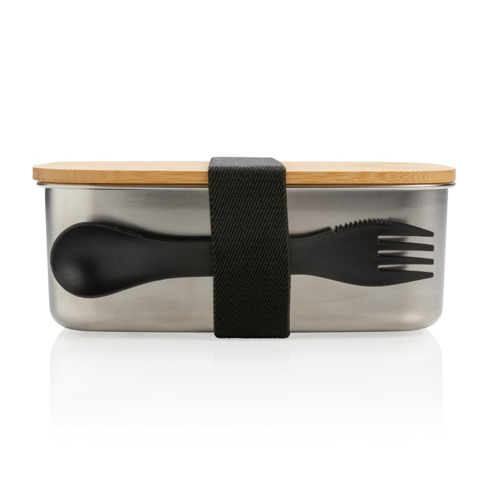 Geniet onderweg van een gezonde, zorgeloze lunch met de strak ogende roestvrijstalen lunchbox met bamboe deksel. Inclusief handige elastische band en spork. De broodtrommel kan niet in de magnetron en oven. Alleen handwas. Inhoud 1,5 liter.