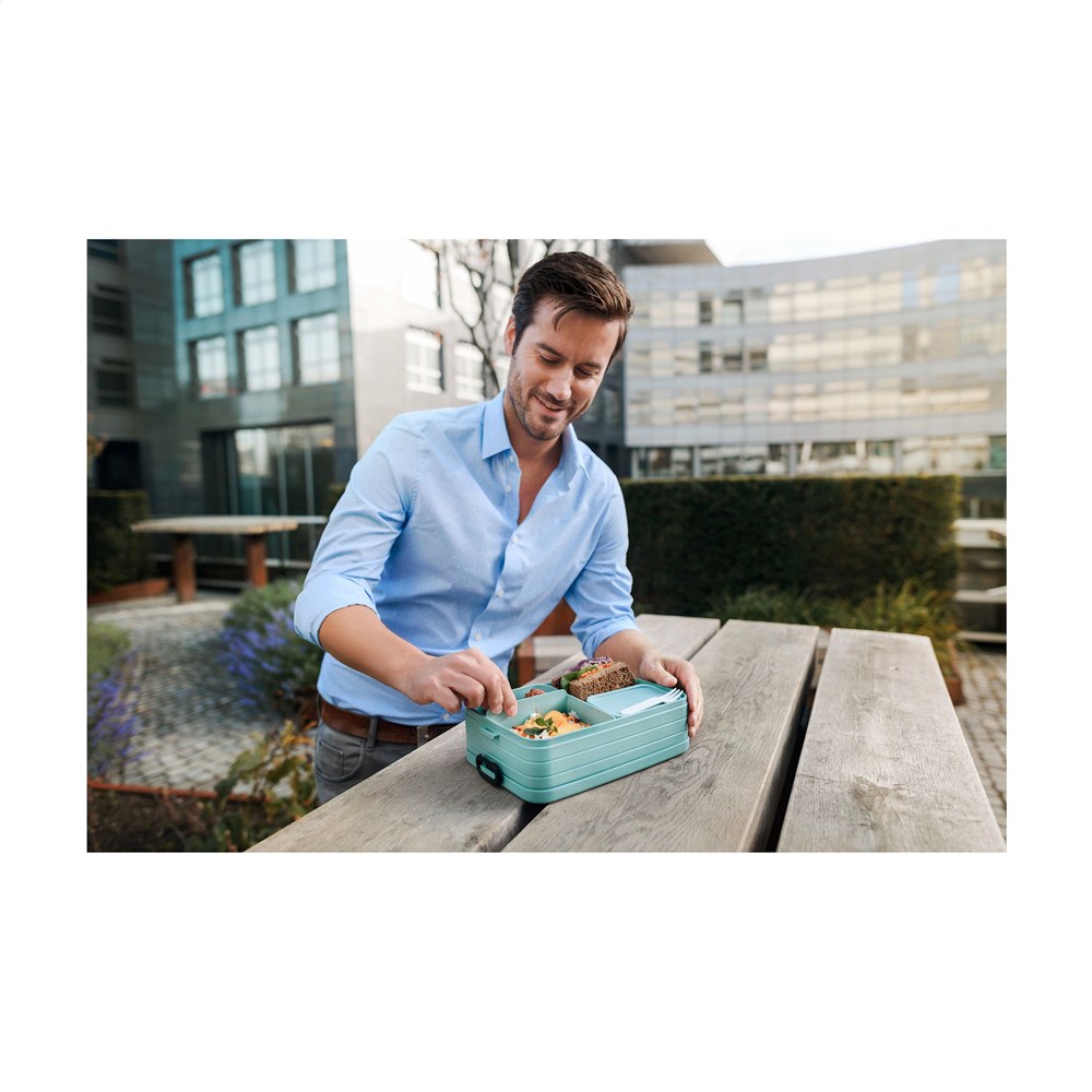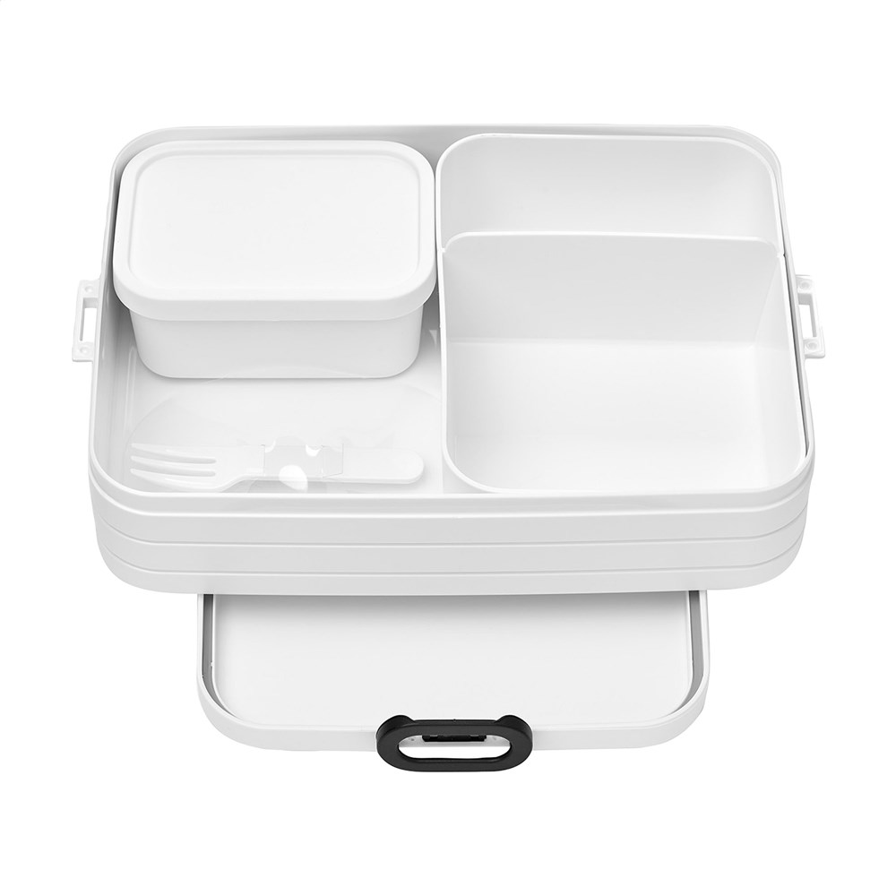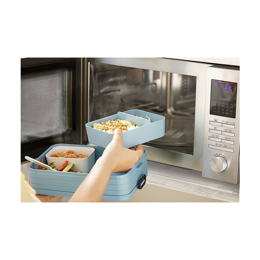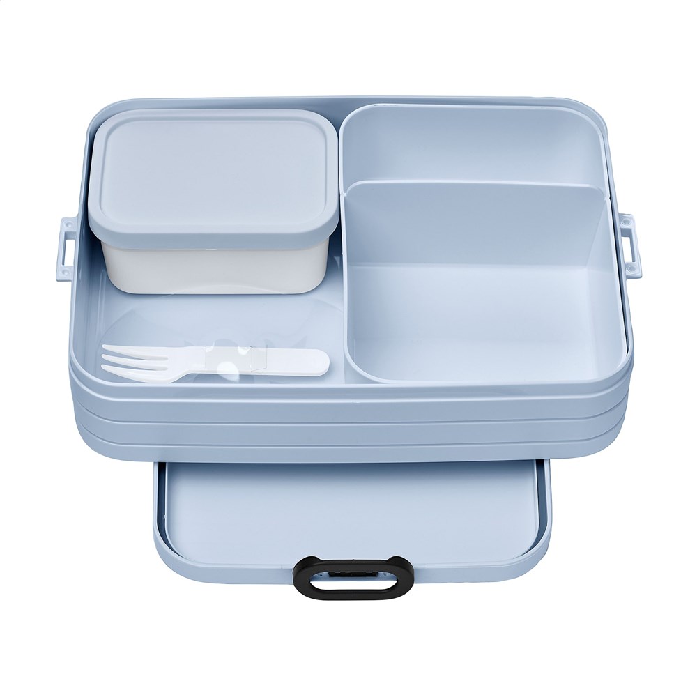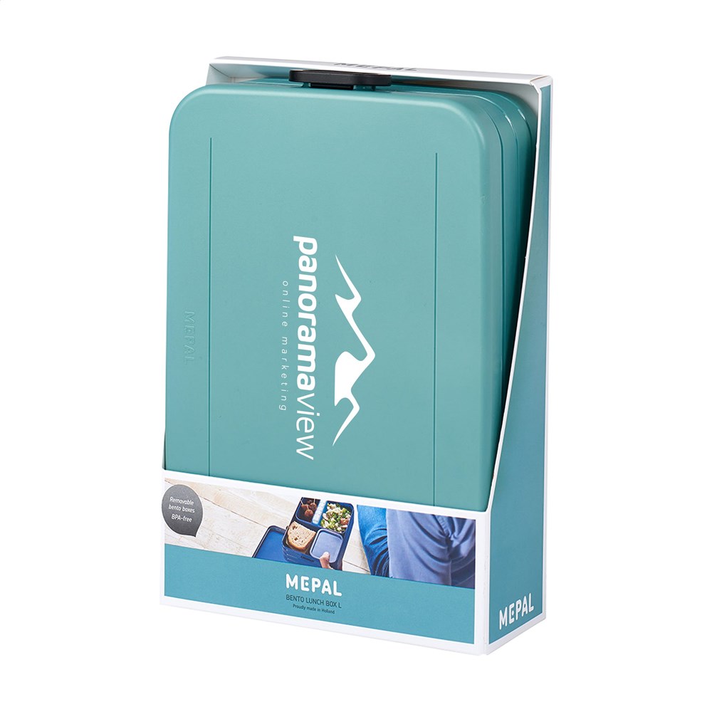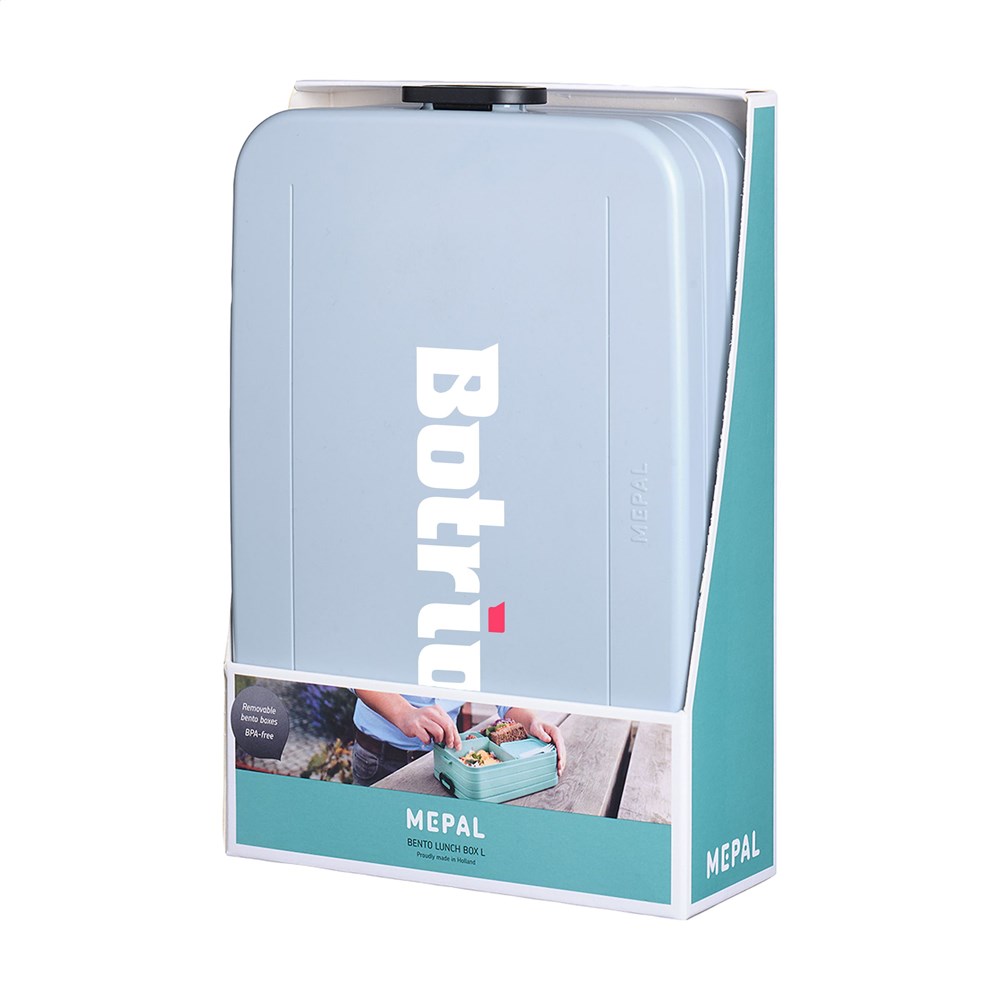 Bento lunchbox van het merk Mepal. De lunchbox is voorzien van twee aparte vakken, plus een extra box met vorkje. De Bento is robuust en beschikt over een handige sluiting. Het deksel sluit perfect en is voorzien van een afdichtring zodat de inhoud lang vers blijft. De bentobakjes in de lunchbox mogen (zonder deksel) in de magnetron. Een hoogwaardig kwaliteitsproduct. Inhoud 1,5 L. Geschikt voor maximaal 8 boterhammen. BPA-vrij en Food Approved. Met 2 jaar Mepal fabrieksgarantie. Made in Holland.