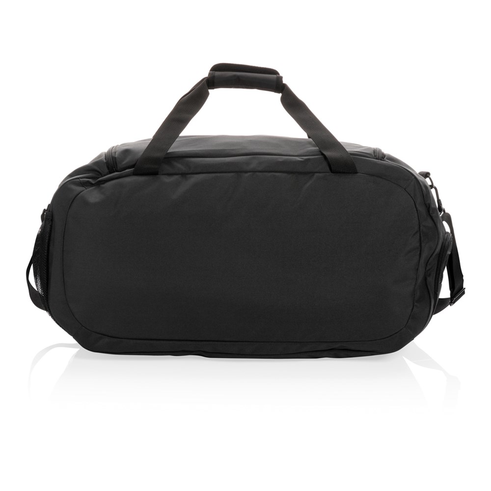 De Swiss Peak AWARE™ RPET moderne sporttas is de perfecte metgezel voor een bezoek aan de sportschool of een korte vakantie. Met een grote gemakkelijk toegankelijke opening kun je je benodigdheden in één oogopslag vinden. Voorvak met ritssluiting en 2 buitenvakken van mesh. De duffel heeft een hengsel waarmee je hem kunt dragen op de manier die het beste aanvoelt. De buitenzijde en voering van de sporttas zijn gemaakt van 100% gerecycled polyester. Met AWARE™ tracer die het echte gebruik van gerecyclede materialen valideert. Elke tas bespaart 18,8 liter water en heeft 31,5 0,5L PET-flessen hergebruikt. 2% van de opbrengst van elk verkocht product dat AWARE™ heeft, wordt gedoneerd aan Water.org.