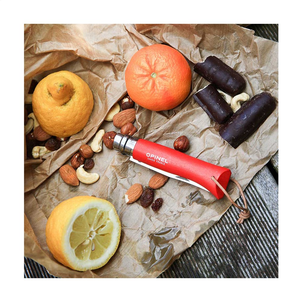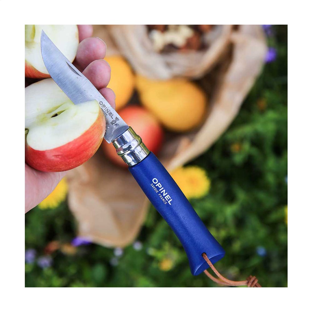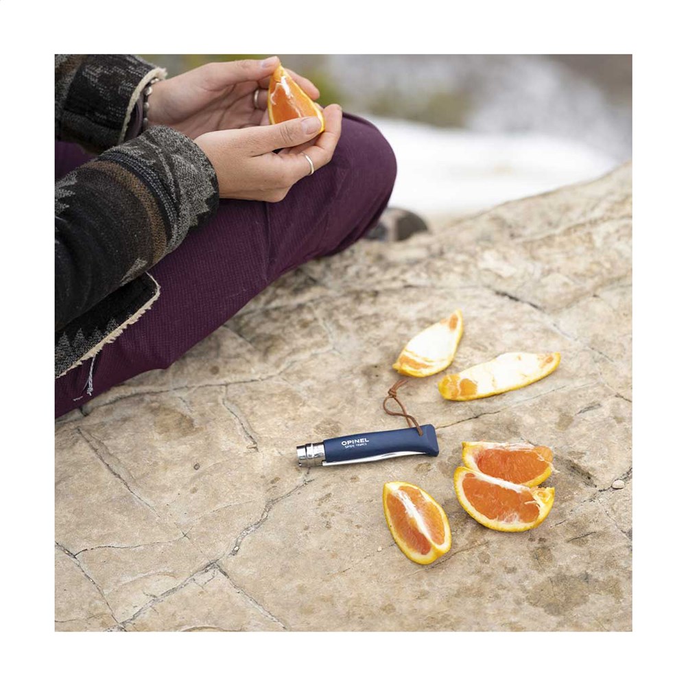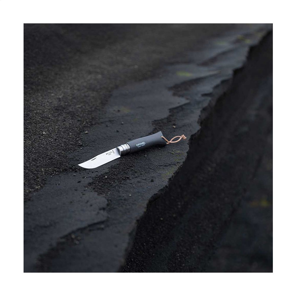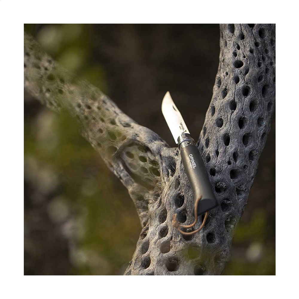 Zakmes van het merk Opinel. Het lemmet is gemaakt van roestvrij Sandvik 12C27-staal. De zwarte handgreep is van beukenhout afgewerkt, met een vernisbeschermlaag tegen vocht en vuil. Het hout is voor 95% afkomstig van Franse, duurzaam beheerde bedrijven. De handgreep is voorzien van een leren koord. Geopend heeft het mes een lengte van 19,0 cm. Beveiligd met een virobloc vergrendeling. Dit mes is ideaal tijdens het picknicken, barbecueën, vissen of tijdens een tracking. Een alledaags zakmes dat je werkelijk voor alles gebruikt. Made in France.