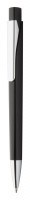 Aluminium balpen met gekleurde huls, zwarte uiteindes. Blauw schrijvend.