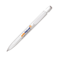 TUN kunststof balpen Peekay. Stijvolle promobalpen met volumineuze witte houder en gekleurde, asymmetrische clip en blauwschrijvende plastic X-20 vull