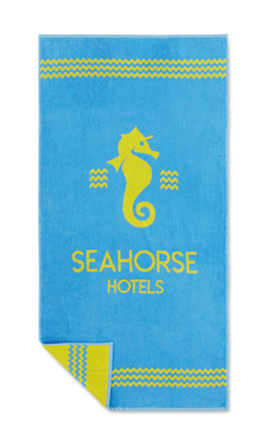 Garengeverfde jacquardhanddoeken van 350 grams worden gemaakt door 2 gekleurde garens (100% katoen) te weven om een ??op maat gemaakt ontwerp te creëren. De achterkant van de handdoek ziet eruit als een negatief van de voorkant. De handdoeken zijn individueel verpakt in polybag.