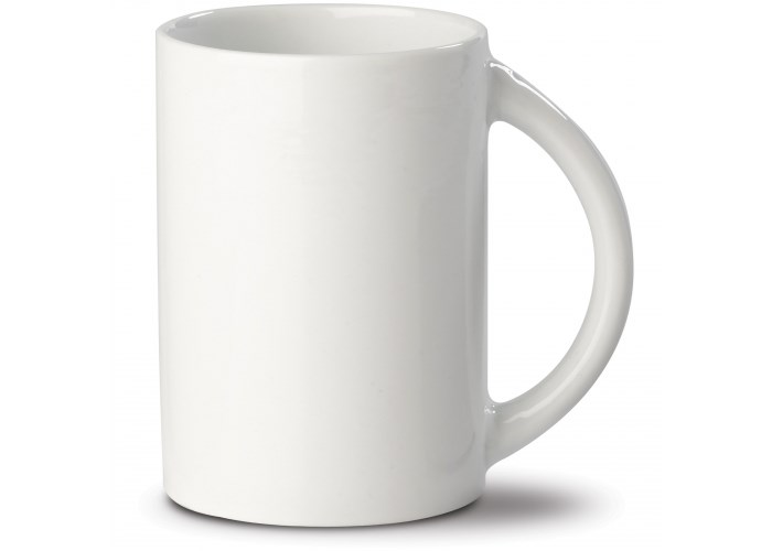 Hoogwaardige porseleinen witte mok geproduceerd in Europa. Hoog en slank model met groot oor.