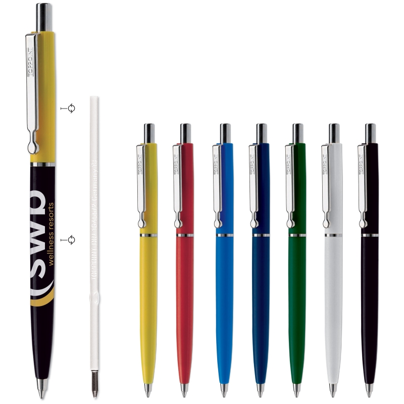 Authentieke tijdloze balpen met metalen onderdelen. Stel uw eigen balpen samen. Met schrijfkleur naar keuze. Met kunststof X20 vulling voor 2,5km schrijfplezier.