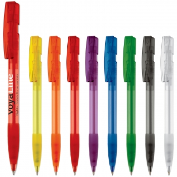 Toppoint designed balpen met transparante shaft, rubberen grip en boogclip. Met blauwschrijvende X20 vulling voor 2,5km schrijfplezier. Made in Germany.