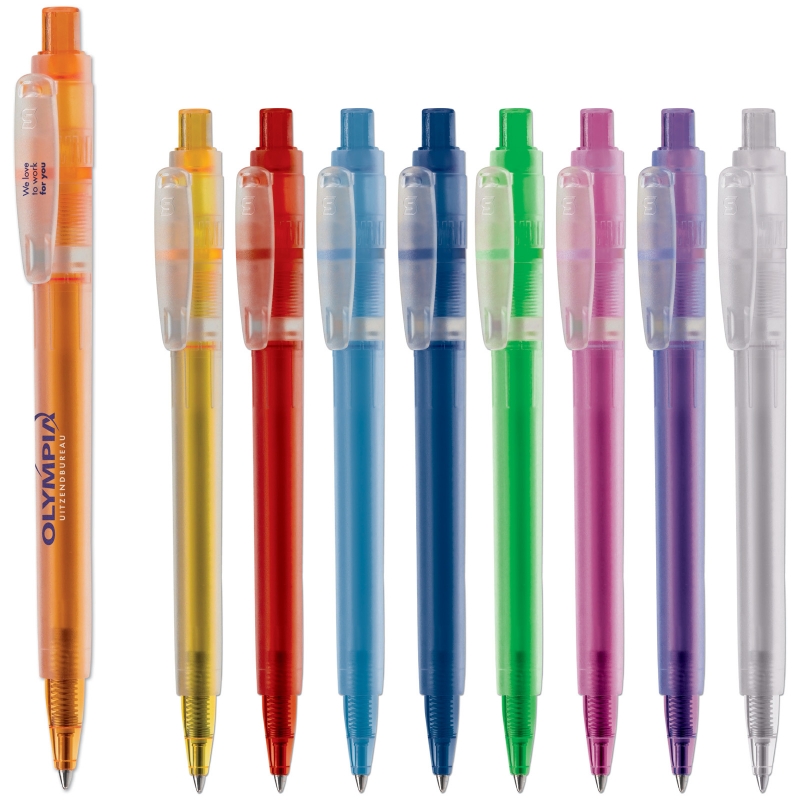 De Baron ’03 Ice is een frosty balpen met brede clip. Het bevat een Jumbo vulling met blauw schrijvende inkt. De pen bevat een drukmechaniek en is gemaakt van ABS kunststof. Geproduceerd in Europa. Kleur combinaties voor deze pen zijn mogelijk vanaf 5.000 stuks.