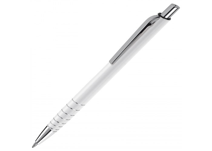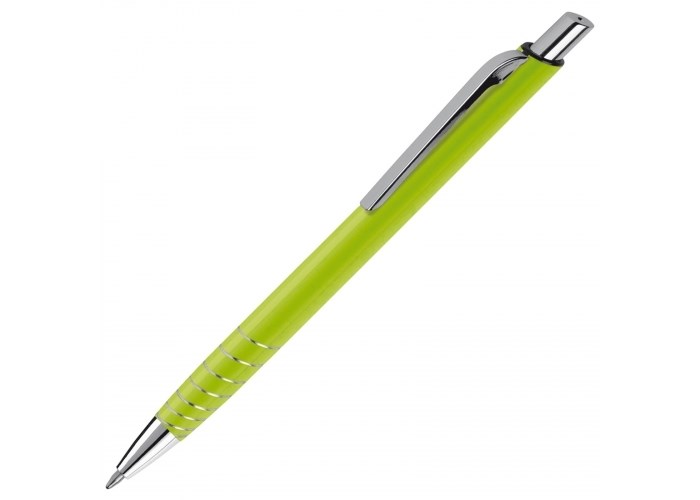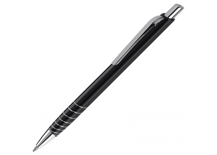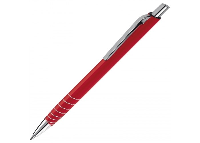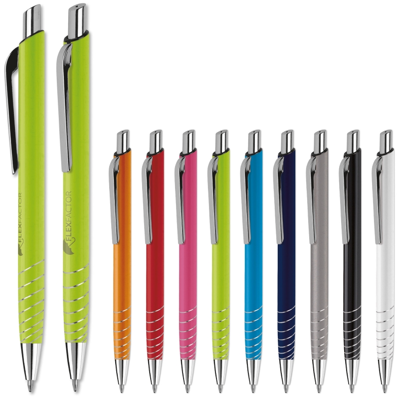 Toppoint aluminium balpen met metalen clip en drukmechanisme. Voorzien van gedraaide ringen voor een extra fraai accent. Blauwschrijvende vulling.