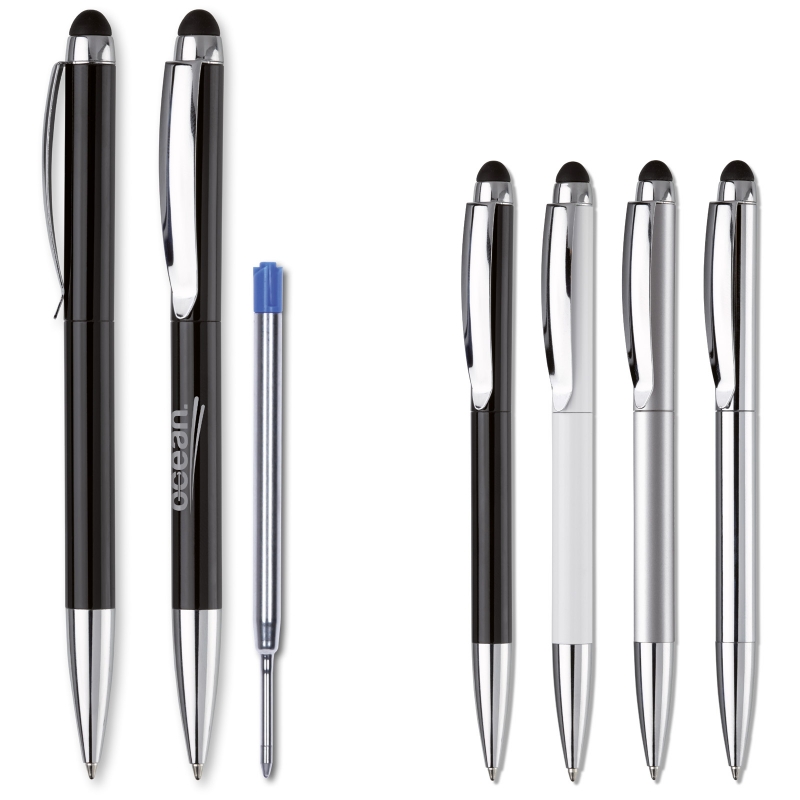 Toppoint metalen stylus balpen, voorzien van een blauwschrijvende metalen Jumbo vulling. Met draaimechanisme, metalen clip en onderstuk. Lasergravering mogelijk.