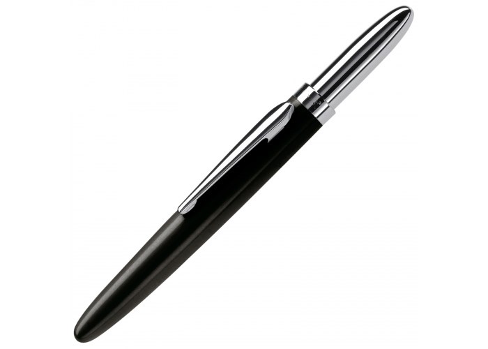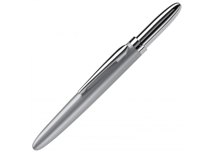 Metalen balpen met gekleurde kap en verchroomde glanzende delen. Blauwschrijvende kunststof vloeibare vulling. Lasergravering mogelijk.