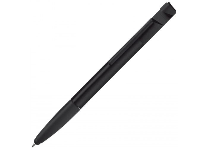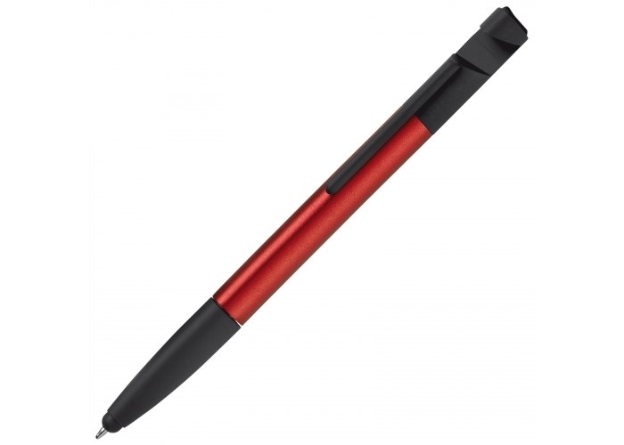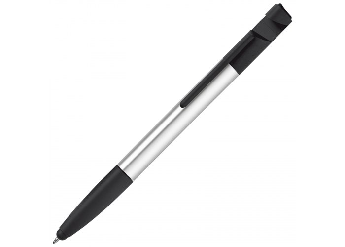 Aluminium balpen met draaimechanisme en stylusfunctie. Tevens te gebruiken als standaard en reiniger voor een mobiele telefoon. In de houder zit een tweedelige schroevendraaier geïntegreerd en een liniaal in centimeter en inch is op de houder gedrukt. De balpen is blauwschrijvend.