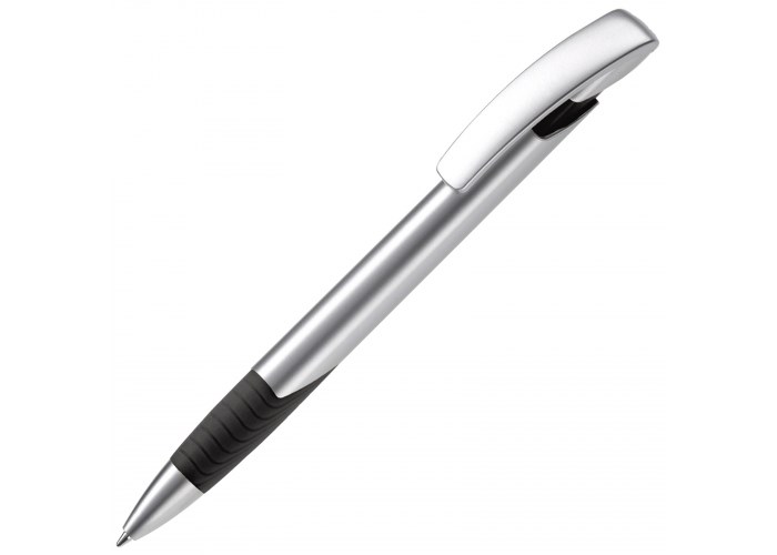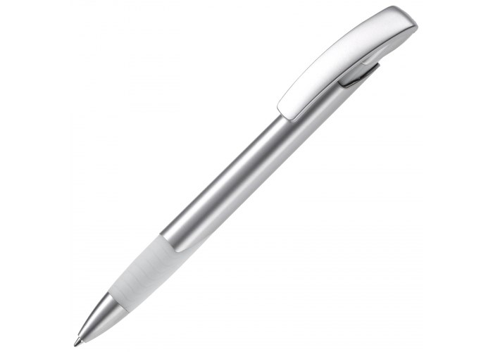 Moderne Toppoint balpen. Unieke vormgeving met zilveren onderdelen en mat, metalen punt. Gekleurde grip en tussenstuk.