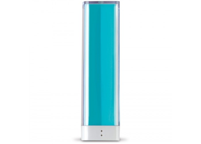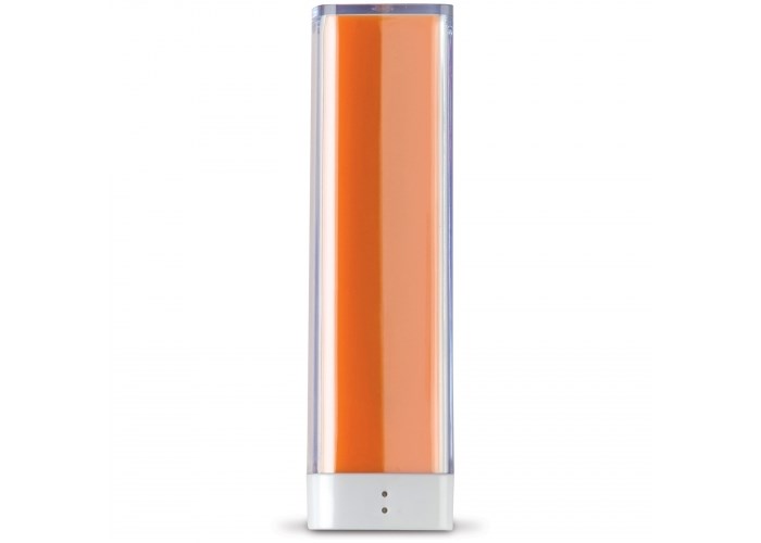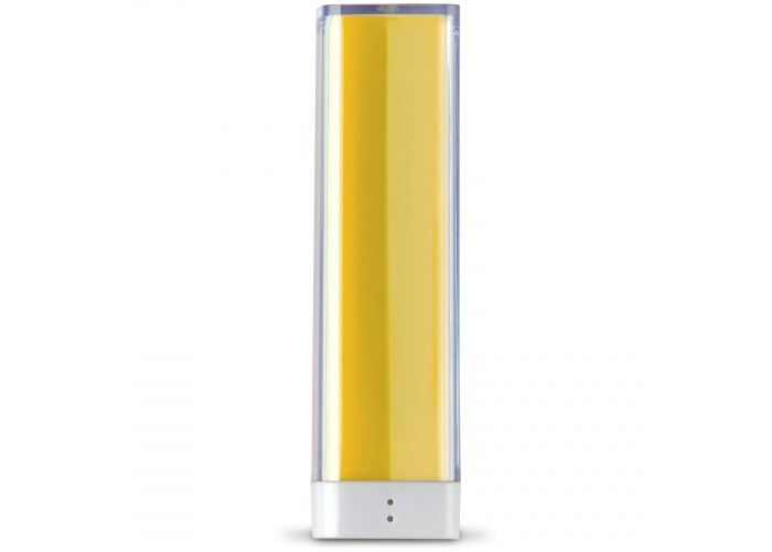 Populaire kunststof 2200mAh powerbank in meerdere kleuren leverbaar. Gekleurde binnenzijde met transparante behuizing. Wordt geleverd inclusief kabel om de powerbank op te laden. Per stuk in geschenkverpakking verpakt.
