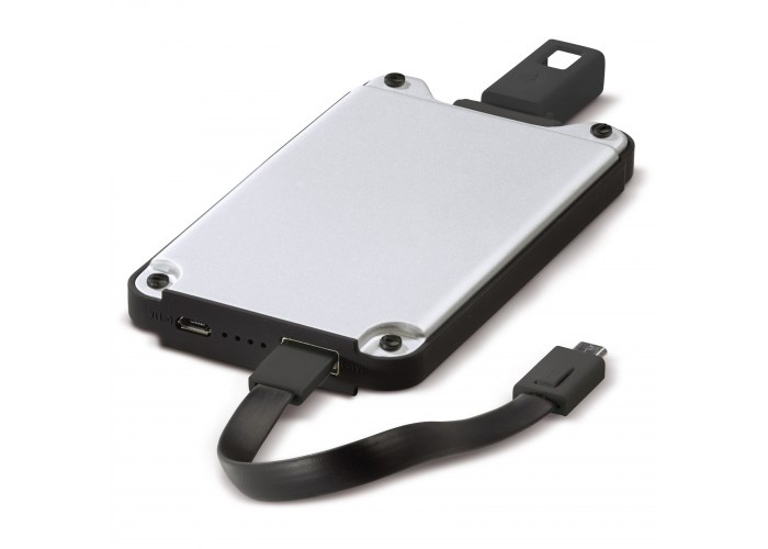 Toppoint design outdoor powerbank (4000mAh) met stoere rubberen buitenrand. De powerbank wordt geleverd inclusief USB/Micro-USB kabel die tevens te gebruiken is om de powerbank vast te houden. Per stuk in geschenkverpakking geleverd.