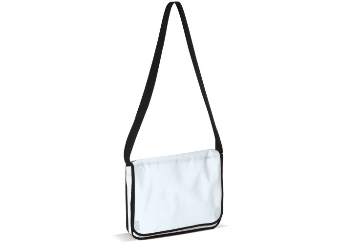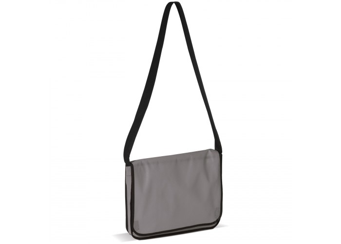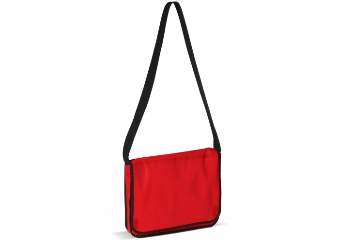 Non-woven schoudertas. Met zwarte draagriem en ruimte voor vier balpennen. Lengte draagriem: 1.250mm, breedte: 55mm.