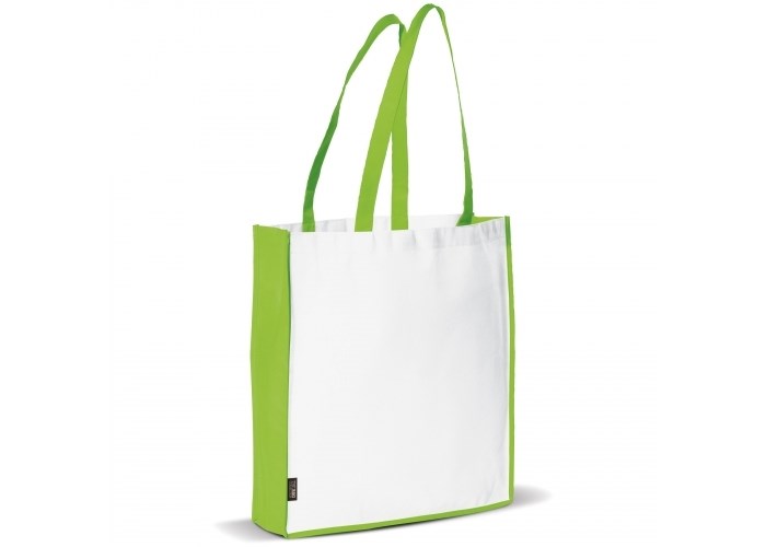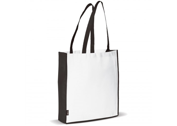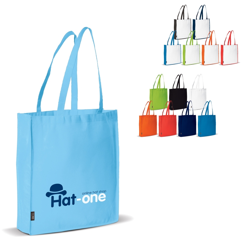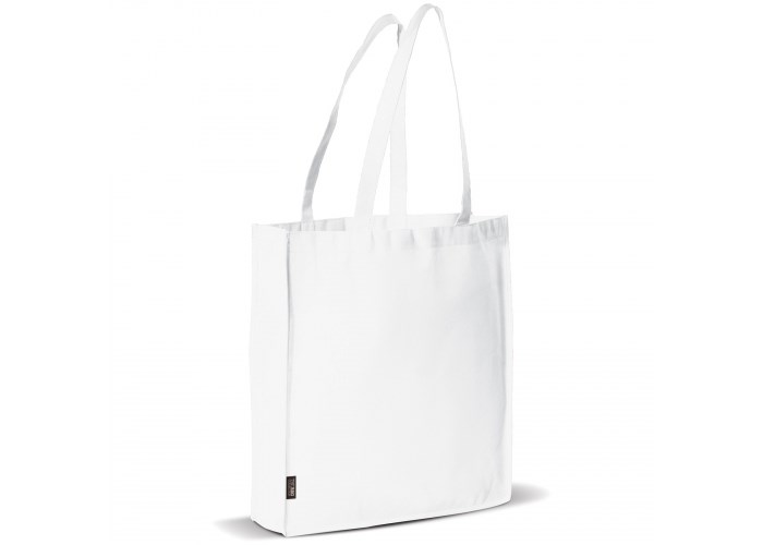 Non-woven draagtas met lange hengsels zodat deze ook als schoudertas gebruikt kan worden. Groot drukoppervlak.