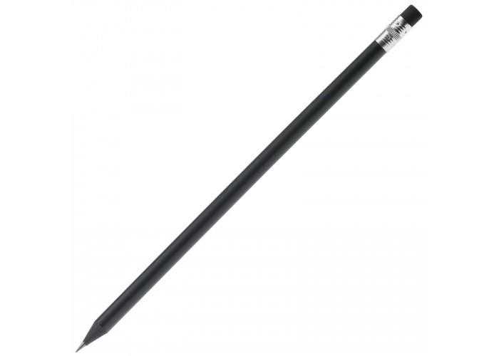 Zwart rond potlood met gum, gepunt.