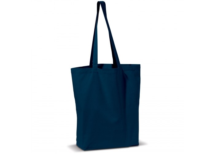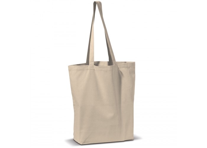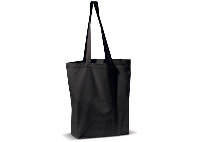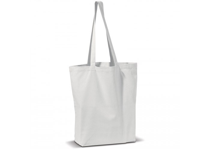 Rechthoekige katoenen canvas draagtas met lange hengsels. Van hoogwaardige kwaliteit.