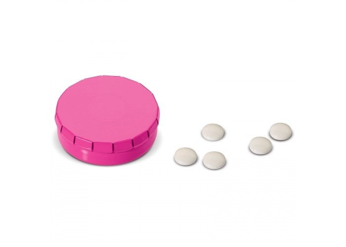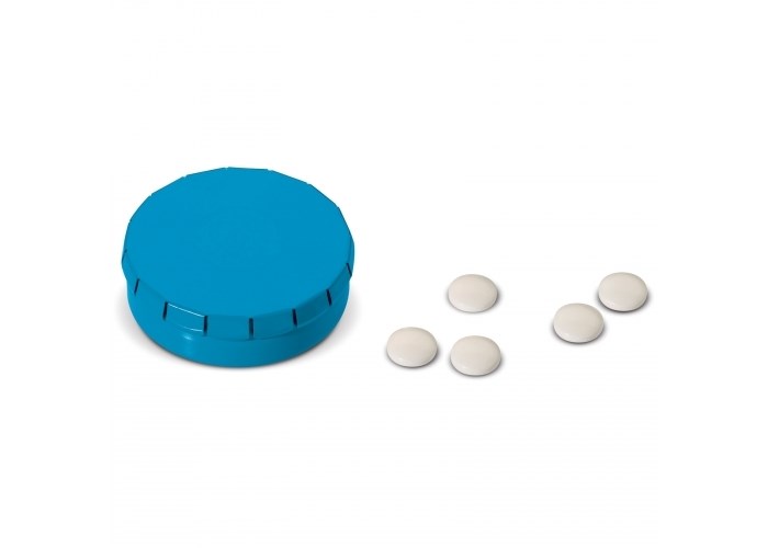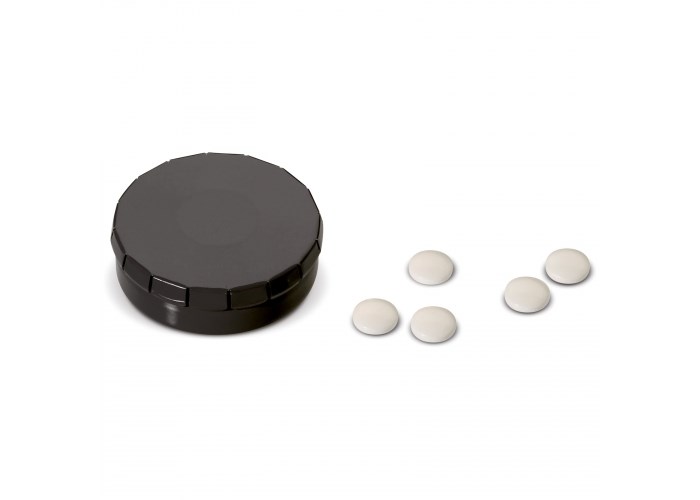 Met één klik is het pepermuntdoosje te openen en met een simpele handbeweging is het doosje te sluiten. Niet suikervrij. Twaalf gram Europese pepermunt.