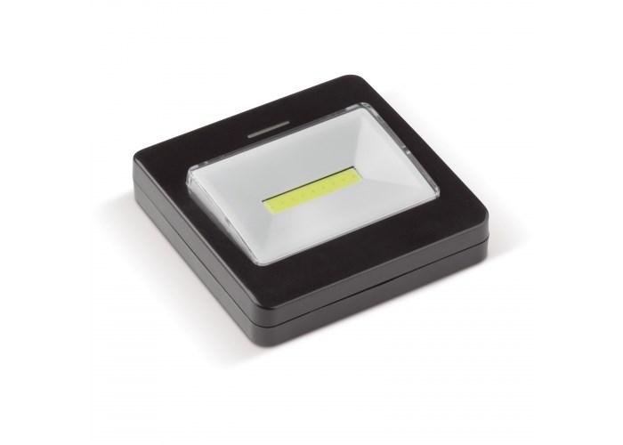 Nachtlampje met COB LED. Eenvoudig te bevestigen door middel van het klittenband. Met glow in the dark functie. Werkt op de meegeleverde batterijen. Per stuk in geschenkverpakking verpakt.