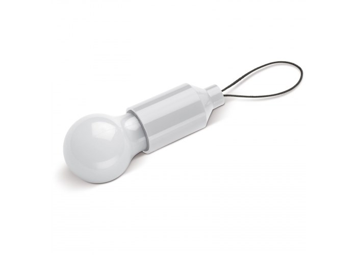 Sleutelhanger gloeilampje dat te gebruiken is aan bijvoorbeeld een sleutelbos of tas. Gaat eenvoudig aan door aan het gloeilampje te trekken. Het lampje bevat één LED die tien lumen levert en is gemaakt van ABS.