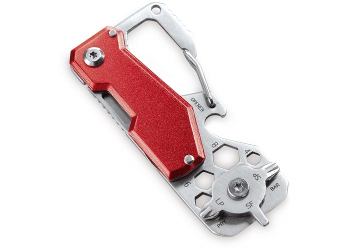 Deze multitool is eenvoudig in gebruik en biedt allerlei bruikbare tools, zoals een zakmes, flessenopener en schroevendraaier. Kan eenvoudig aan bijvoorbeeld kleding of een tas bevestigd worden. De tool wordt geleverd in een geschenkverpakking met een instructiekaartje.