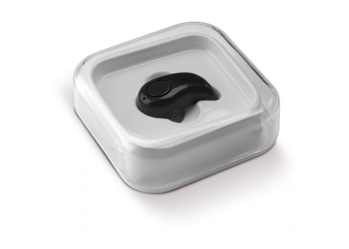Draadloos oordopje verpakt in een kunststof vierkant doosje met transparante deksel. Luister naar muziek of bel hands-free. Ruimte voor een bedrukking op het doosje. Wordt inclusief oplaadkabel geleverd.