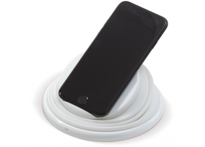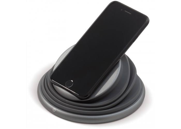 Pop-up draadloze lader met zeven LED lichtkleuren die door het siliconen gedeelte schijnen, is een mooie gadget om cadeau te krijgen. Deze wireless charger is door middel van het siliconen gedeelte op verschillende manieren uit te klappen tot een maximale hoogte van 80mm en is daardoor ook te gebruiken als telefoonstandaard. Het apparaat laadt smartphones in een korte tijd op en wordt geleverd inclusief kabel en handleiding in een geschenkverpakking.