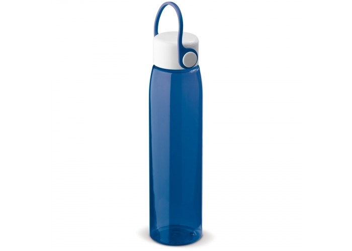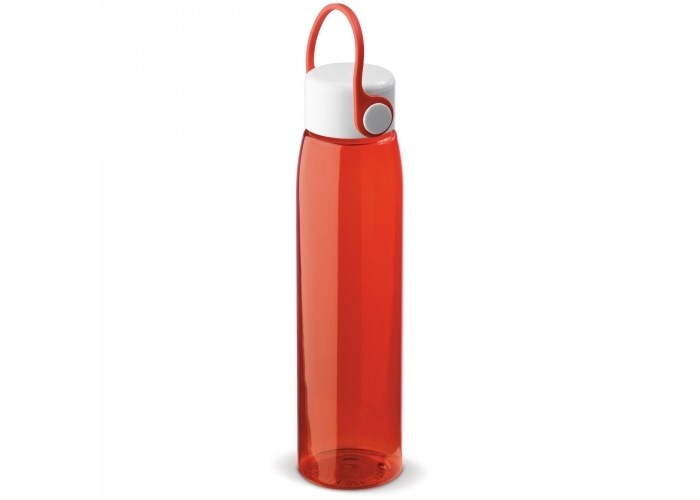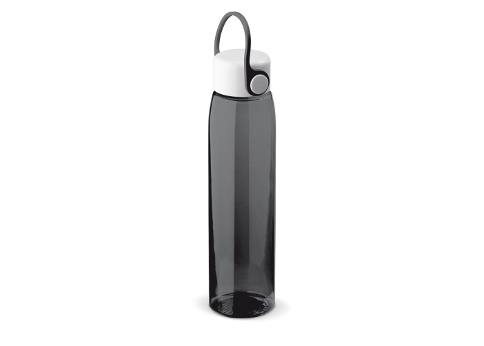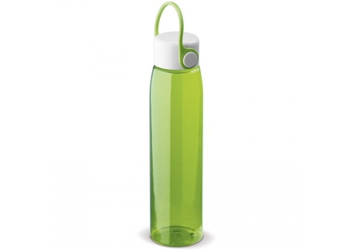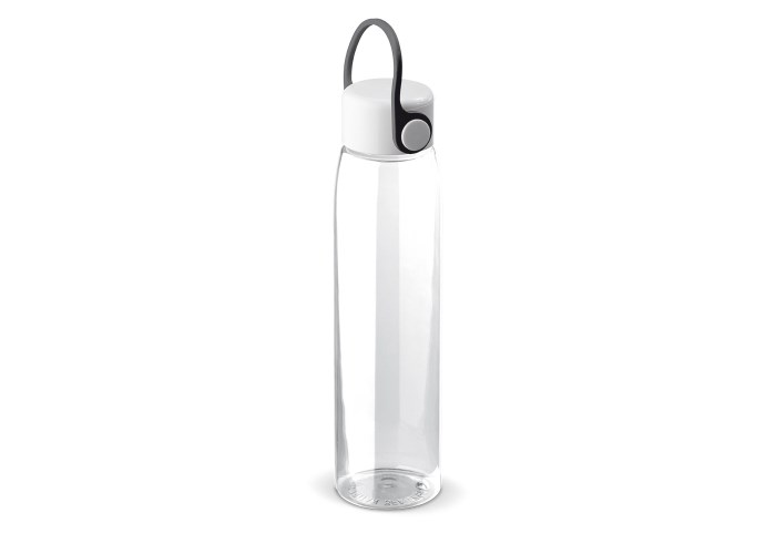 Lekvrije waterfles met siliconen hengsel. Het slanke model past eenvoudig in de (laptop)tas en heeft een moderne uitstraling. De fles is BPA-vrij, duurzaam en herbruikbaar. Geschikt voor koude, niet-koolzuurhoudende dranken.