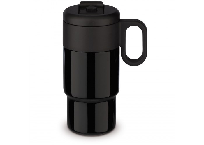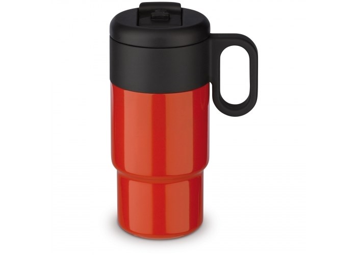 Dubbelwandig vacuüm geïsoleerde beker uit de 'Flow' serie. De mok met omklapdeksel is 100% lekvrij, dus eenvoudig mee te nemen. Zowel de binnenwand als de buitenwand van de mok bestaan uit RVS en is van zeer hoogwaardige kwaliteit. Daardoor blijft het drinken langer op de gewenste temperatuur.