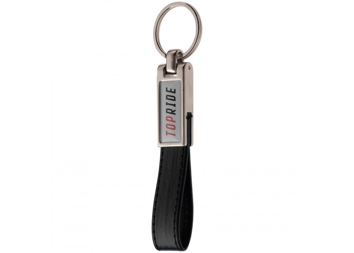 Sleutelhanger met leren bandje en rechthoekige doming.