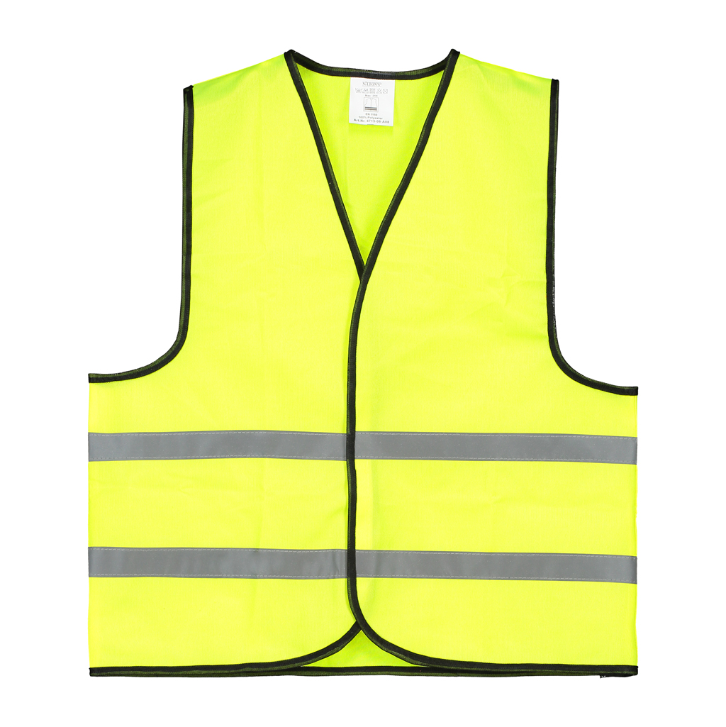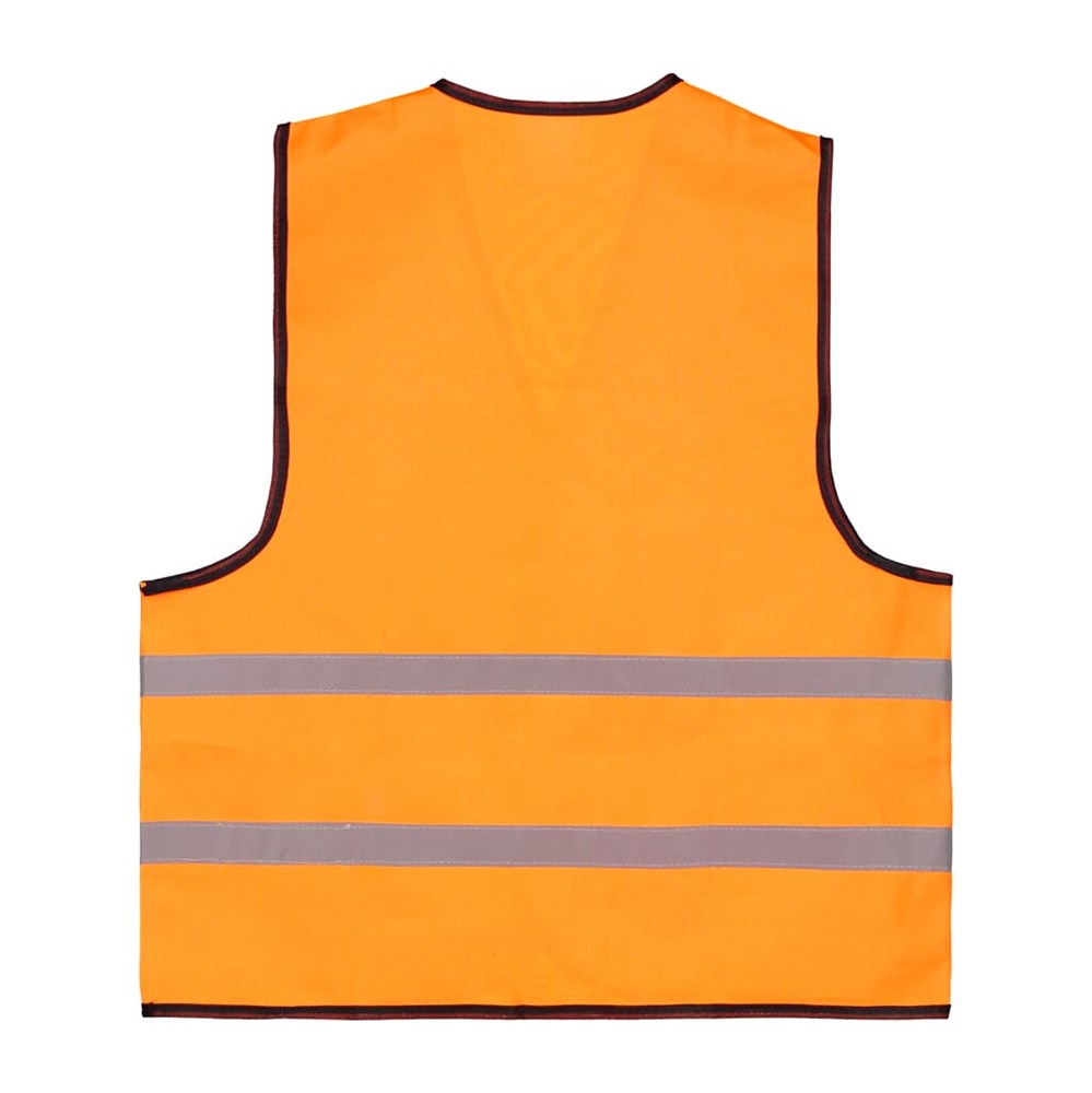100 % polyester, 120 gr/m2, los verpakt, met twee doorlopende reflectiestrepen. Verstelbaar met klittenband, geschikt voor kinderen van 6 - 12 jaar.