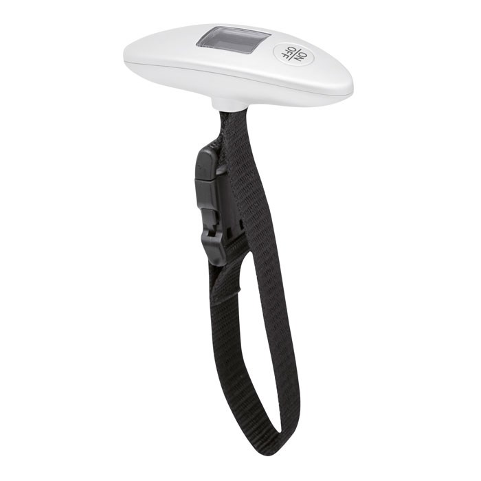 Bagage weegschaal in ABS behuizing. Maximale gewicht: 40 kg. Meet in kilogrammen en ponden. Inclusief 1 knoopcelbatterij. Individueel verpakt in een zilverkleurig kartonnen doosje.