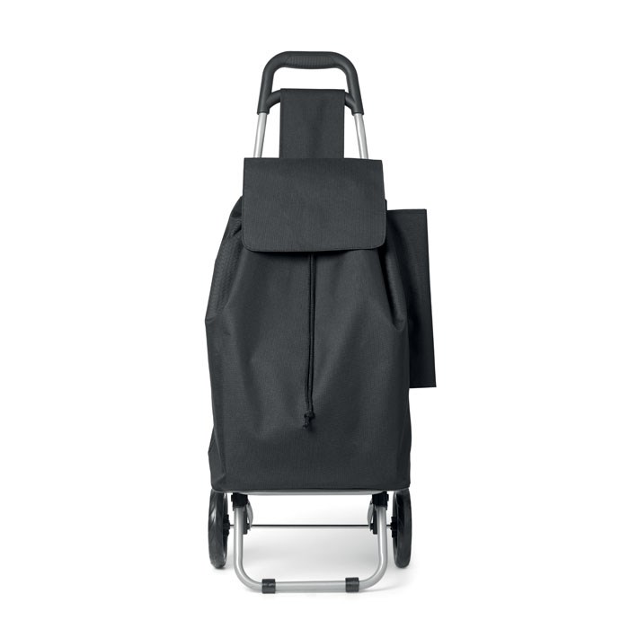Boodschappen trolley van 600D polyester. 25 liter, opvouwbaar, is makkelijk op te bergen. 1 Groot opbergvak, achtervak met ritssluiting en aan de zijkant een mogelijkheid om een paraplu op te bergen.